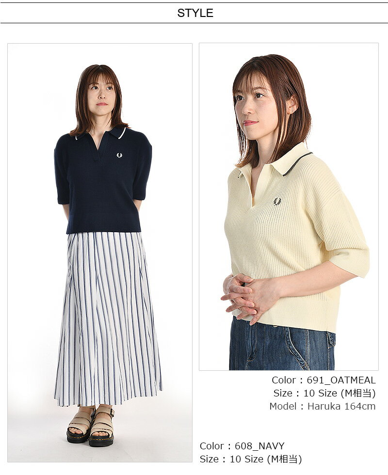 FRED PERRY/フレッドペリー OPEN-COLLAR MESH KNIT SHIRT K9114 オープンカラー メッシュニットシャツ[25年春夏新作 レディス メッシュ編み ショート丈 コットン トレンド ポロシャツ 月桂樹 おしゃれ かわいい 夏 大人 プレゼント 人気 お出かけ]
