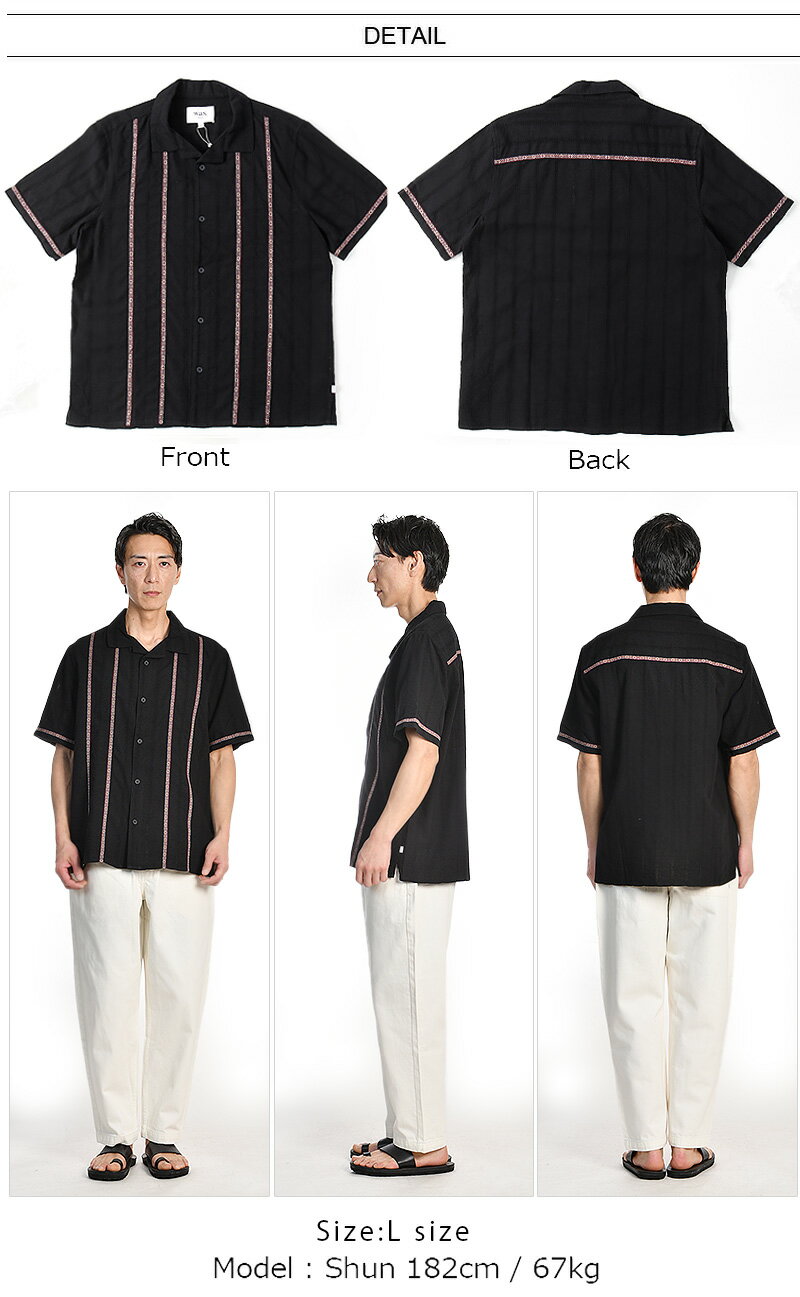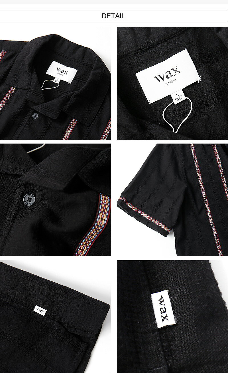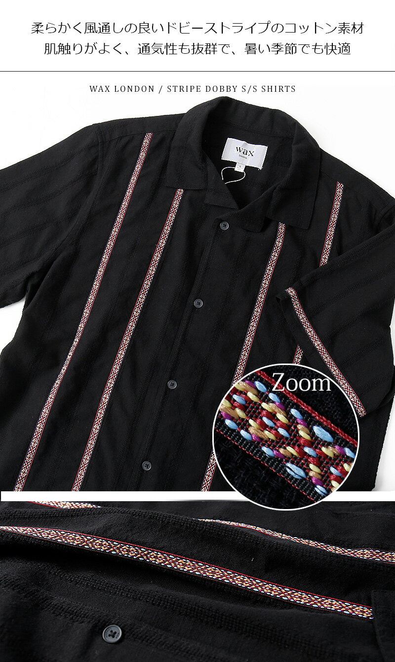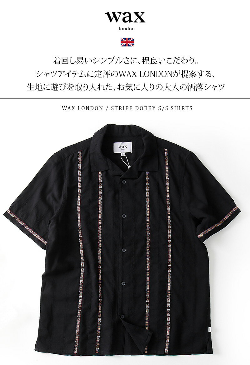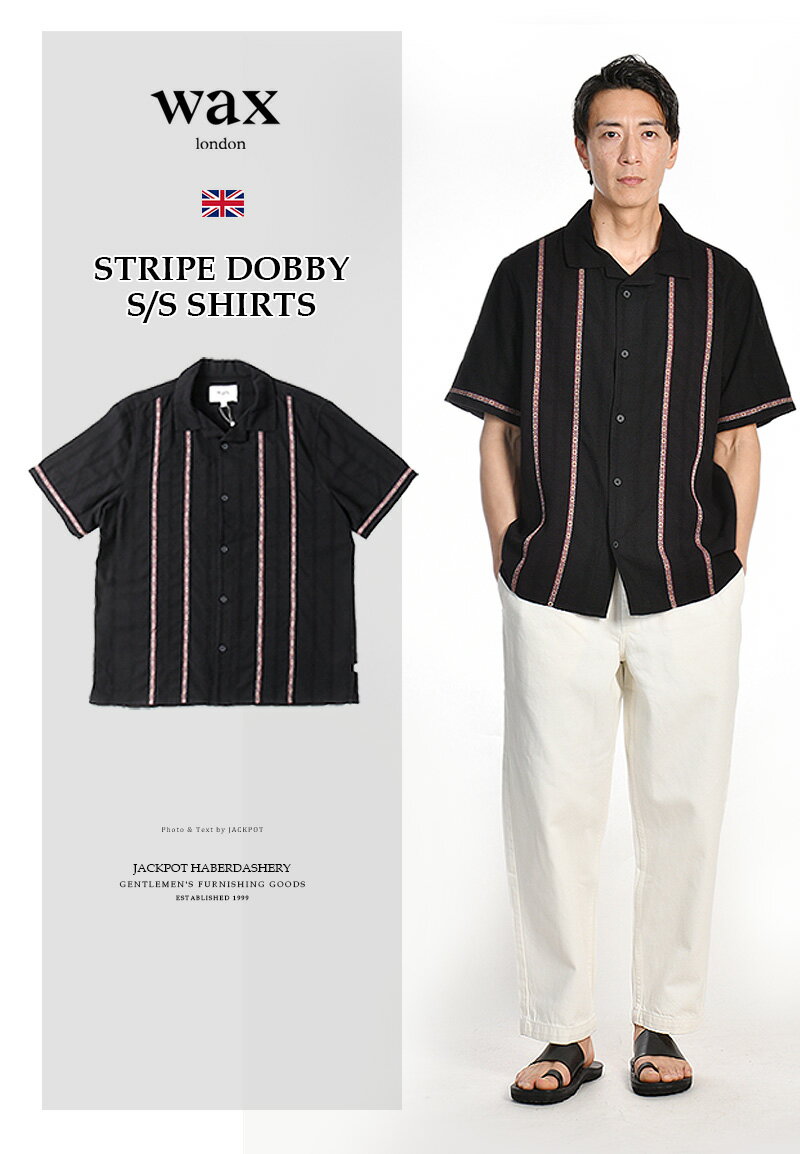 Wax London/ワックスロンドン_DIDCOT STRIPED OPEN DOBBY S/S SHIRTS SS25-SSS-DID-BOK-BKM オープンカラーシャツ[25年春夏新作 メンズ 柄テープ ドビーストライプ コットン 英国 ショートスリーブ 半袖 開襟 おしゃれ かっこいい LEON 夏 大人 お洒落 かっこいい]