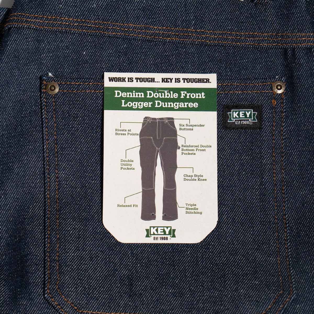 キー KEY ダブルフロント デニム ロガー ダンガリー パンツ | 447-41 メンズ W30-W46 L30 ダブルニー ペインターパンツ カーペンターパンツ ワークパンツ 生デニム 14オンス コットン 綿 100% 定番 ワイドシルエット