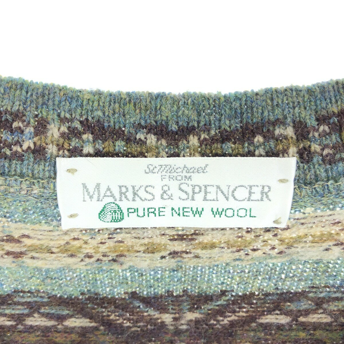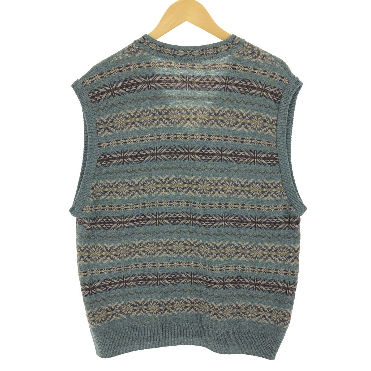 古着 MARK AND SPENCER 総柄 フェアアイル柄 Vネック ウールニットベスト メンズXL相当 /eaa434837 【中古】 【240923】