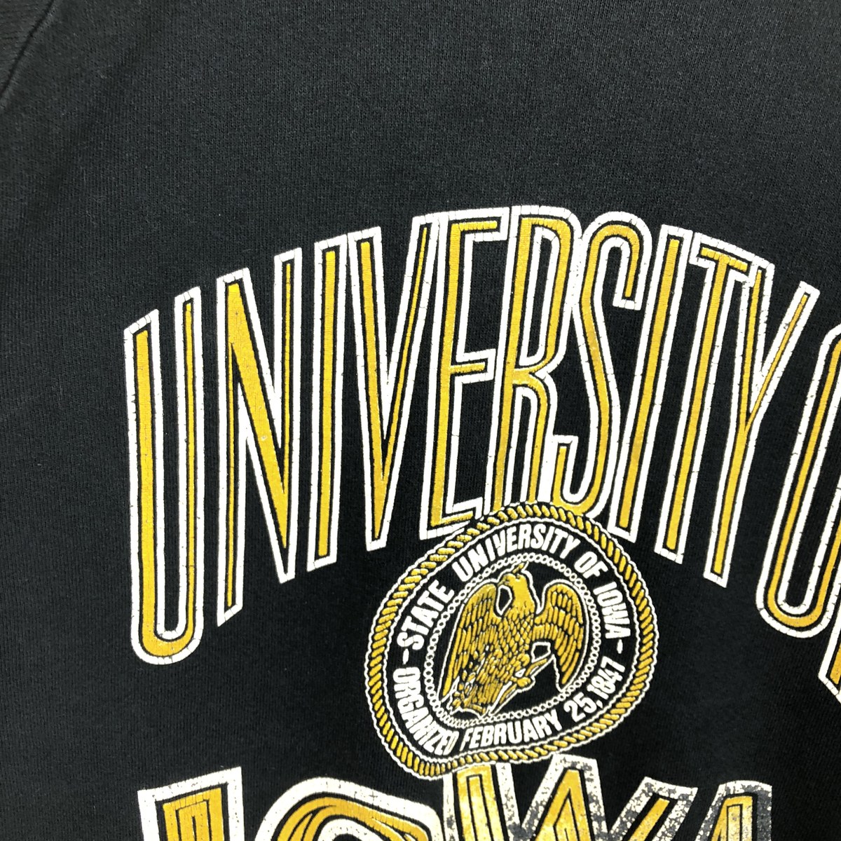 古着 80'S フルーツオブザルーム FRUIT OF THE LOOM IOWA アイオワ大学 3連プリント カレッジスウェットシャツ トレーナー USA製 メンズXL相当 ヴィンテージ /eaa439673 【中古】 【241007】
