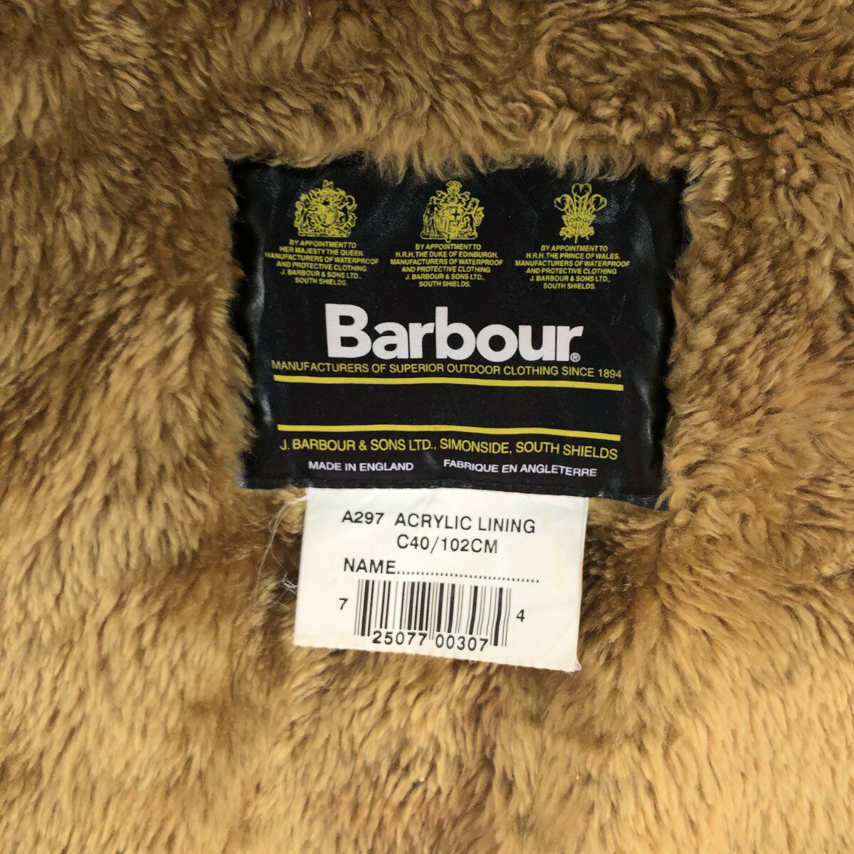 古着 90'S バブアー Barbour A297 ACRYLIC LINING パイルライナーベスト 英国製 C40 メンズXL相当 旧3ワラント ヴィンテージ /eaa502922 【中古】 【250118】
