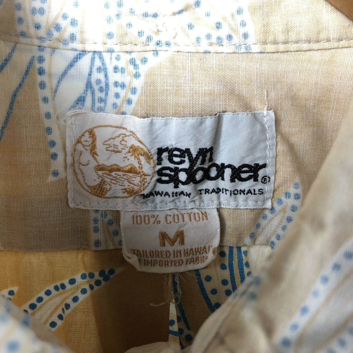 古着 70~80'S レインスプーナー REYNSPOONER 金タグ 乳首タグ 総柄 ボタニカル柄 ボタンダウン ハワイアンアロハシャツ ボックスシャツ ハワイ製 メンズM相当 ヴィンテージ /eaa543185 【中古】 【250509】 【NL2503】