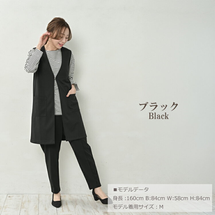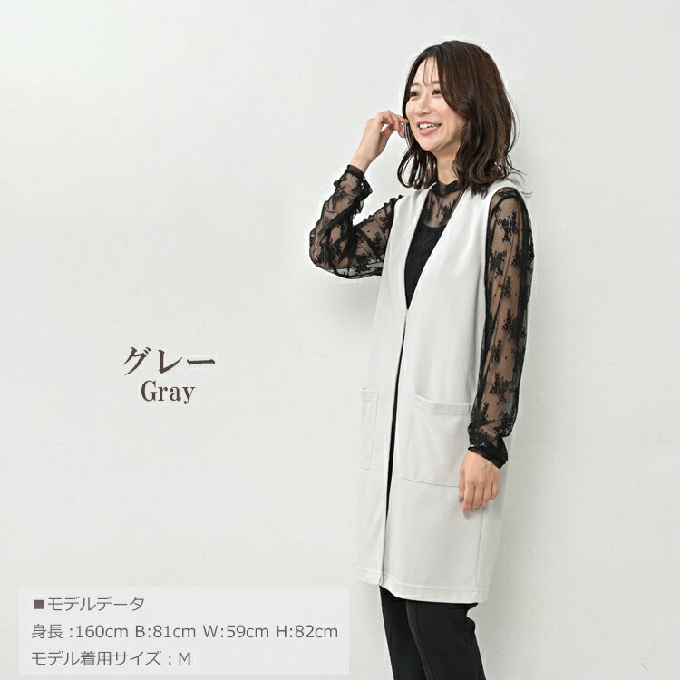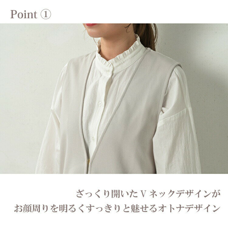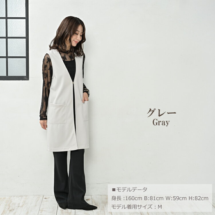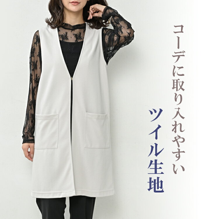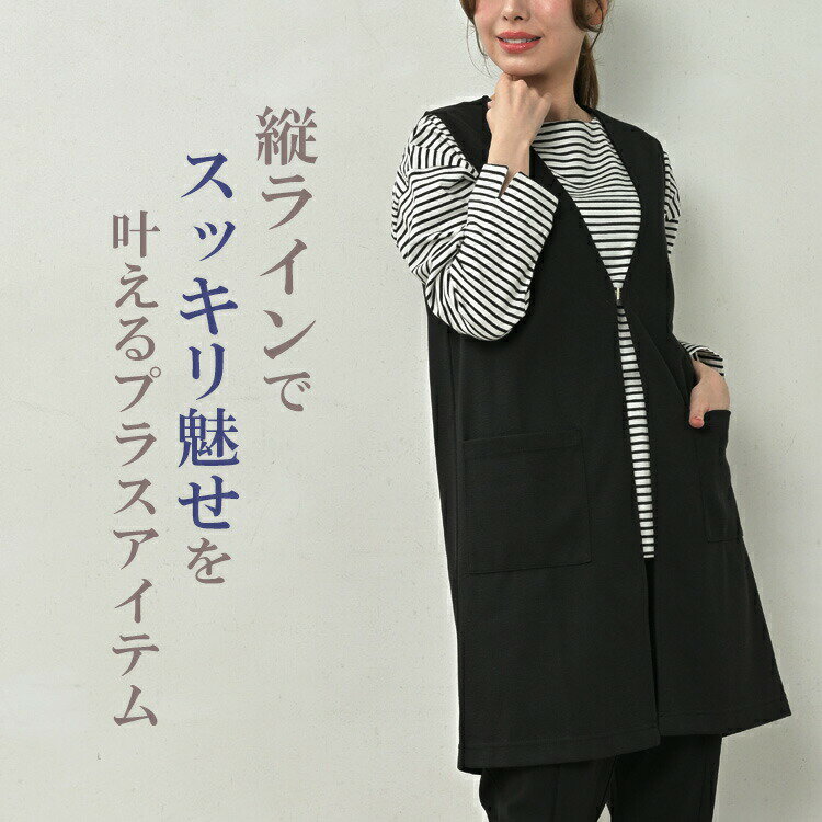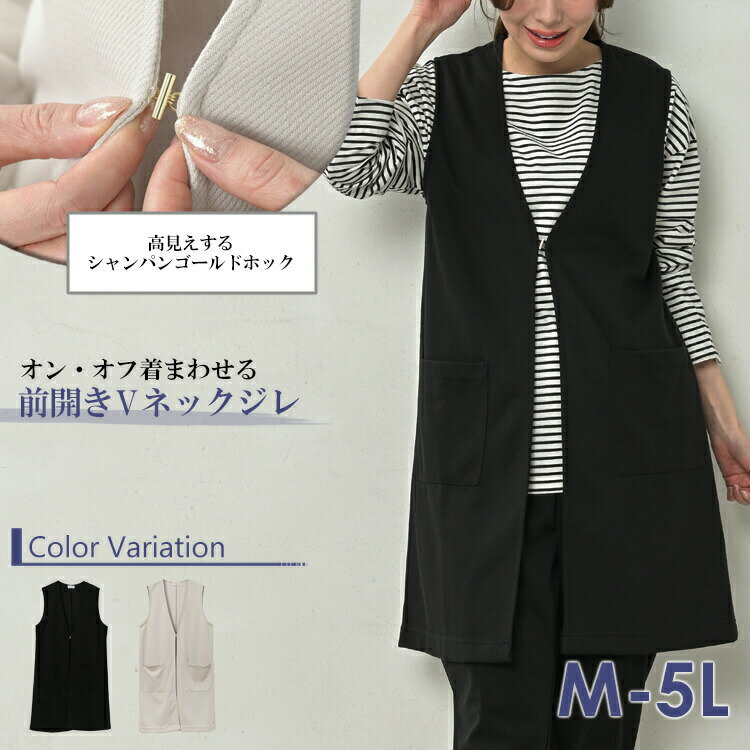 【送料無料※沖縄対象外】大きいサイズ レディース ジレ Vネック 前開きデザイン ホック ポケット バックスリット トップス M/LL/3L/4L/5L ゆったりサイズ ぽっちゃり女子 プラスサイズ