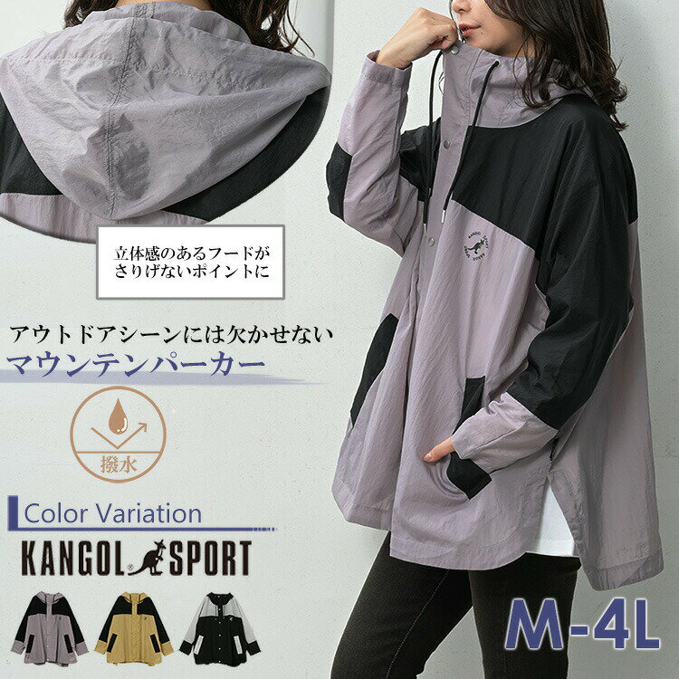 【メール便送料無料】メール便対応 大きいサイズ レディース マウンテンパーカー 長袖 フーディー 撥水加工 アウター KANGOL M/LL/3L/4L ゆったりサイズ ぽっちゃり女子 プラスサイズ