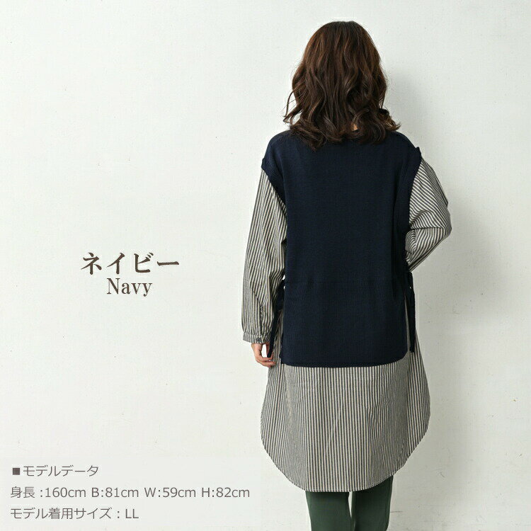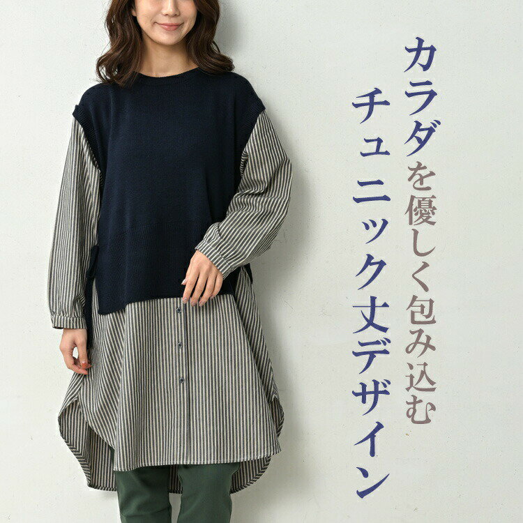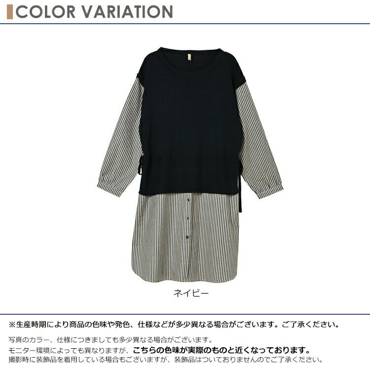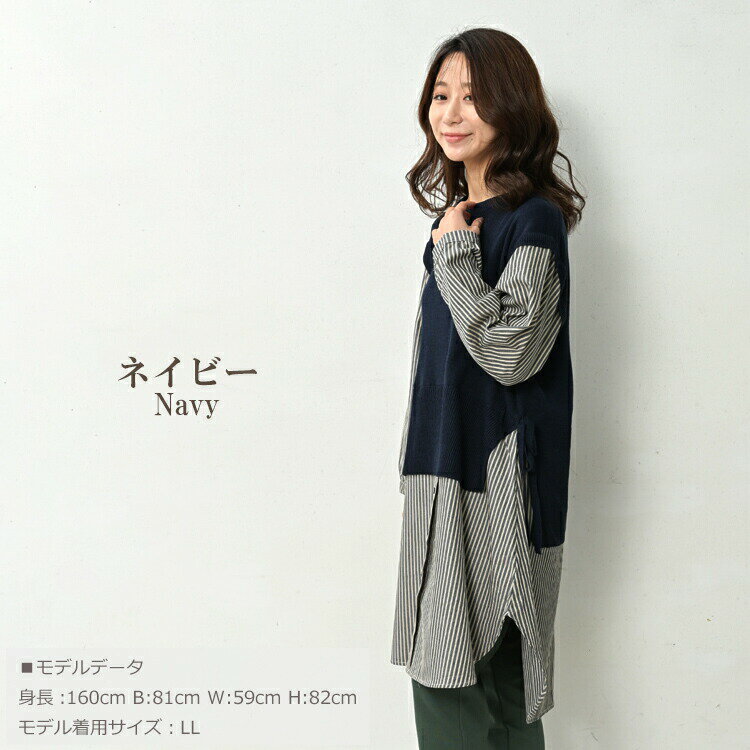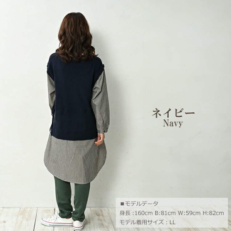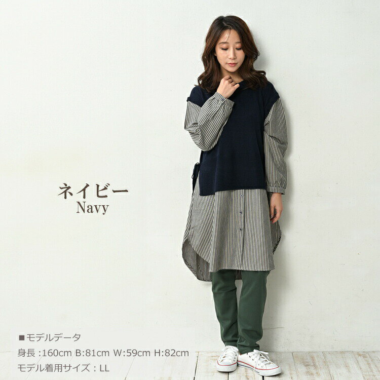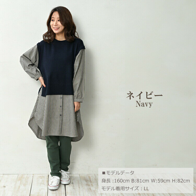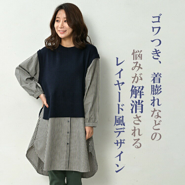 大きいサイズ レディース ベスト重ね着風シャツチュニック 長袖 異素材切り替え カットソー トップス LL/3L/4L/5L ゆったりサイズ ぽっちゃり女子 プラスサイズ