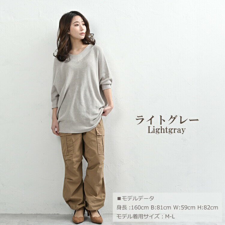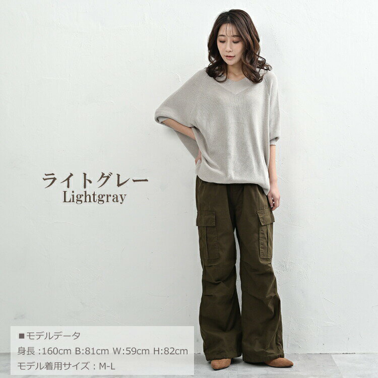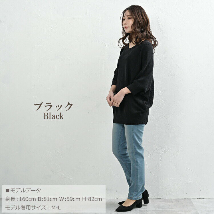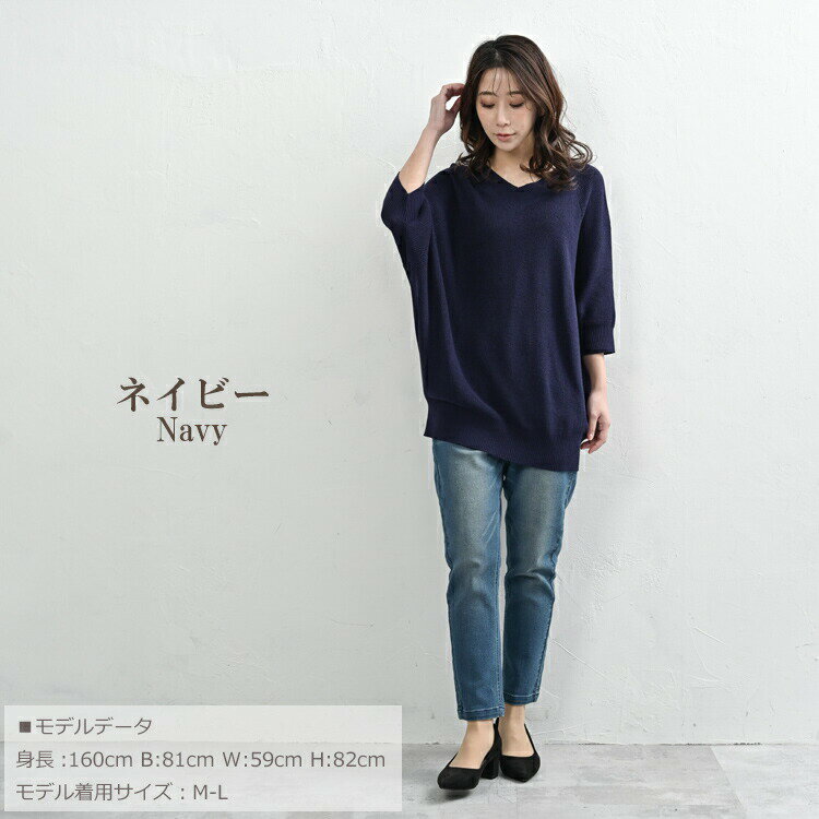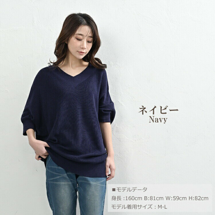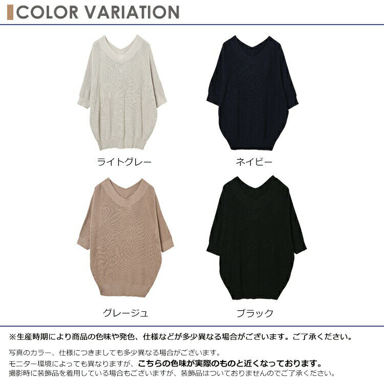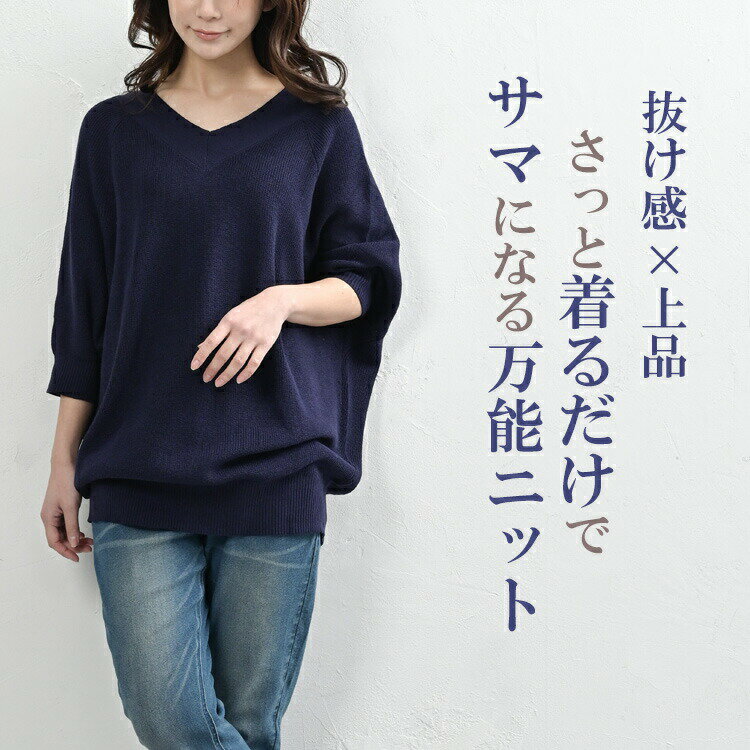 【送料無料※沖縄対象外】大きいサイズ レディース ルーズセーター 7分袖 Vネック ドルマンニット リブ編み トップス LL-3L/4L-5L ゆったりサイズ ぽっちゃり女子 プラスサイズ