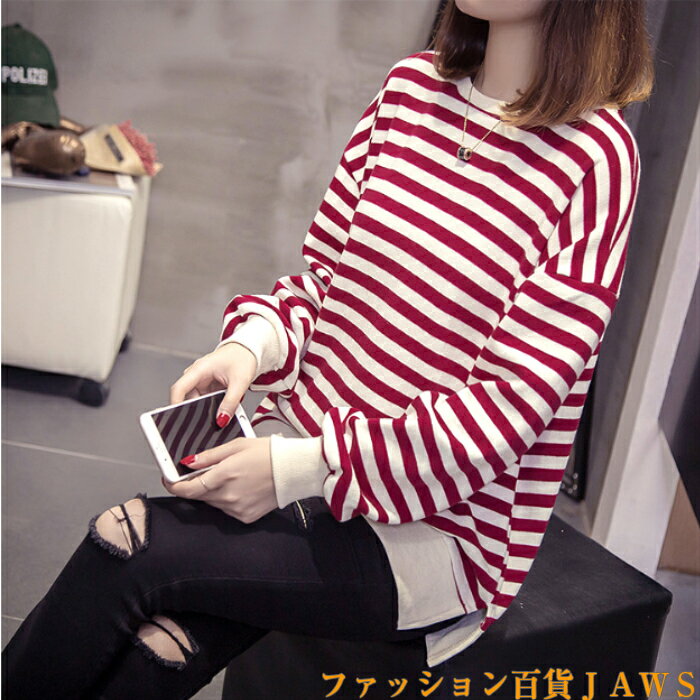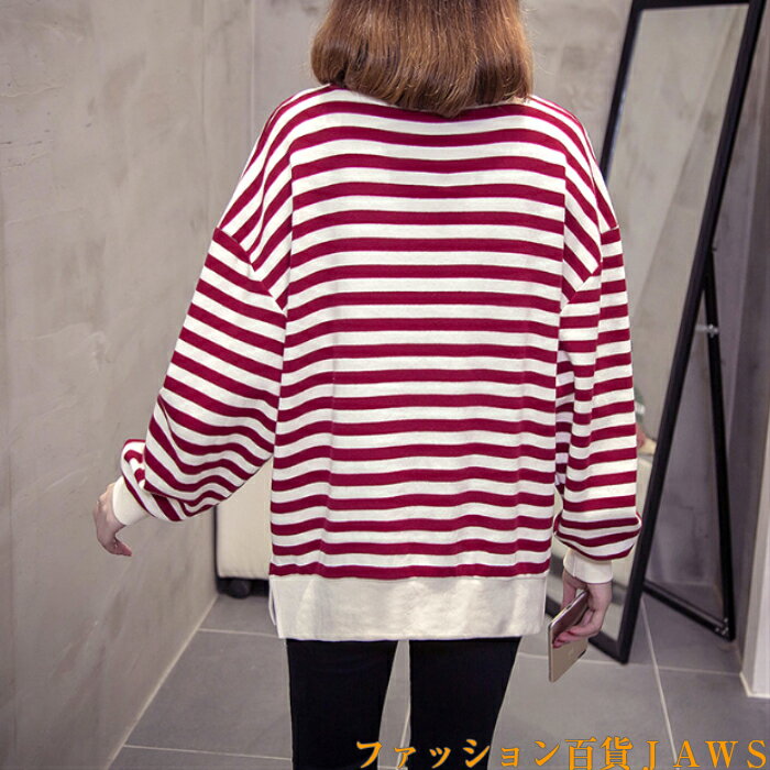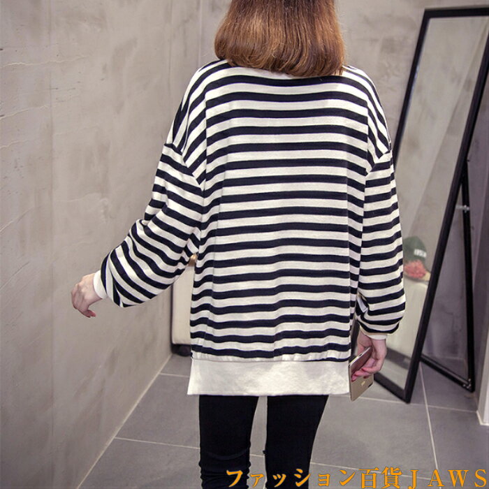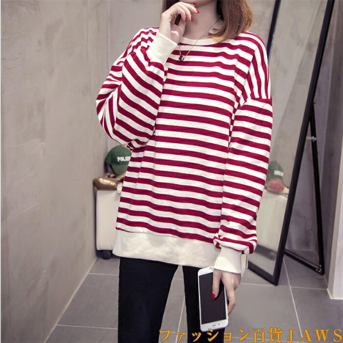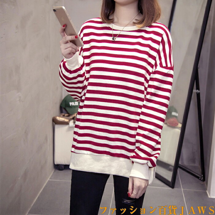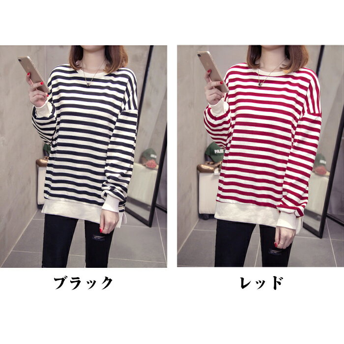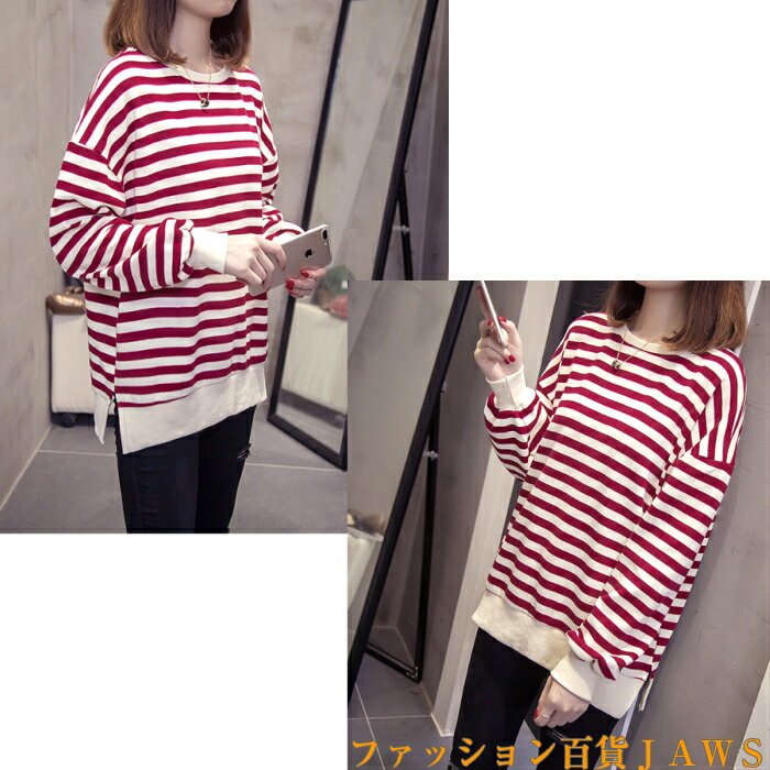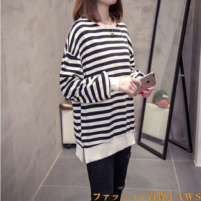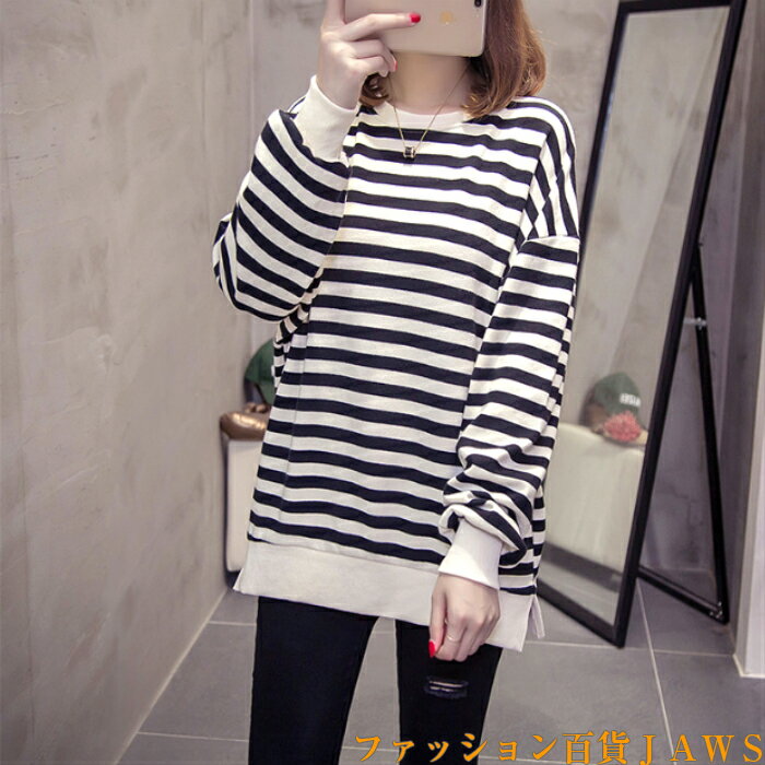 スウェット トレーナー レディース 長袖 長t ロンt チュニック ボーダー ストライプ リブ ゆったり 大きいサイズ 体型カバー カジュアル ストリート ダンス 衣装 韓国 トレンド 定番 学生 ママ 仕事 メンズライク スポーティ 秋 冬