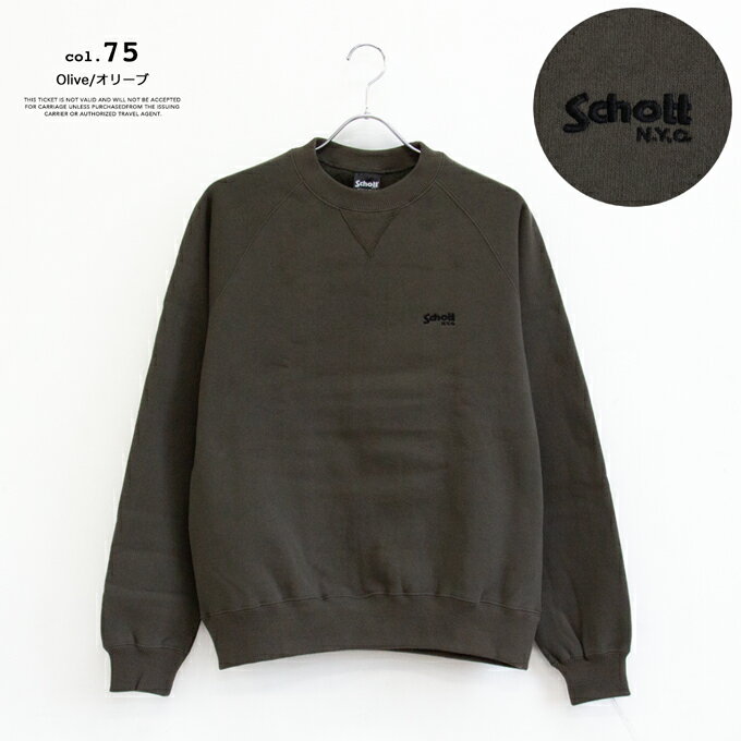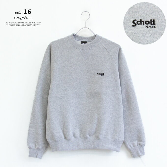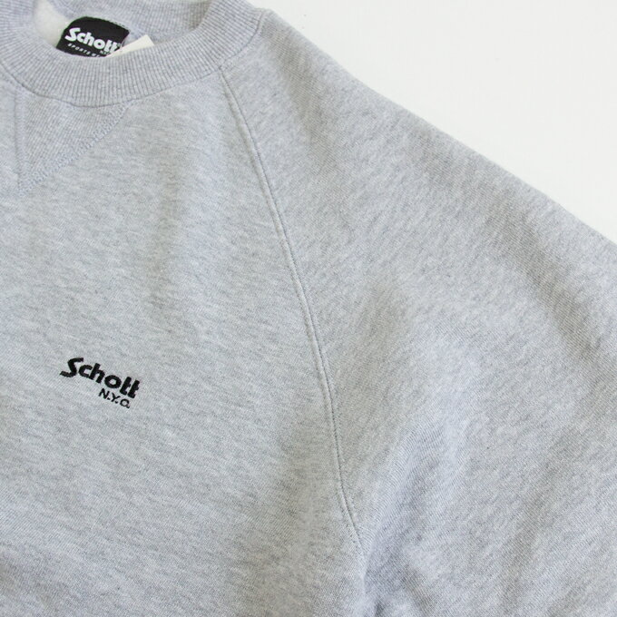 【SALE!!】【 Schott ショット レザー 】 ワンポイント 刺繍 ロゴ スウェットシャツ ONEPOINT EMB LOGO SWEAT SHIRT 3123188 / Mens メンズ クルーネック スウェット ラグランスリーブ 裏起毛 無地 ガゼット