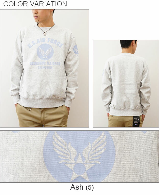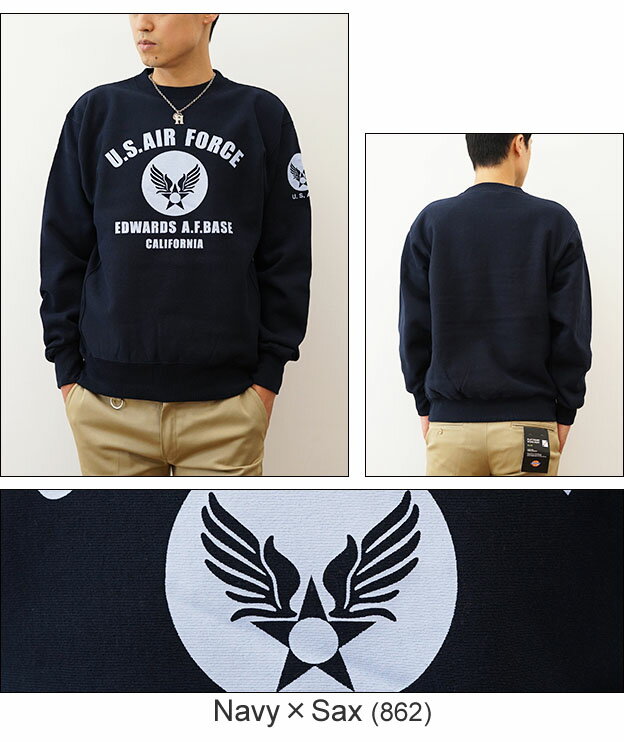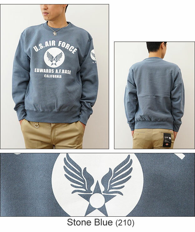 (12ozスウェット)『U.S. AIR FORCE CA』 オリジナル エアフォース ミリタリー プリント クルーネック スエット 長袖 ヘビーウエイト トレーナー メンズ レディース 大きいサイズ ビッグサイズ対応 厚手 裏起毛 リバースウィーブ アメリカ空軍 米軍 USAF 【12SW-CA】