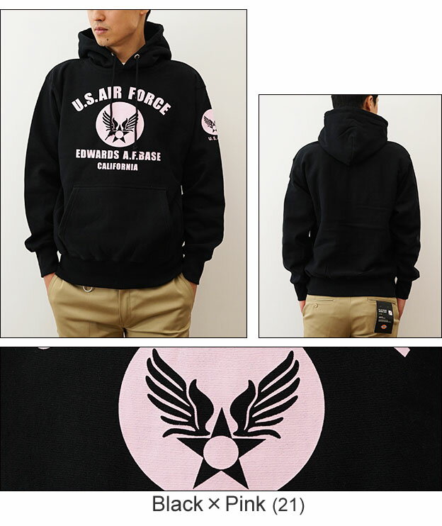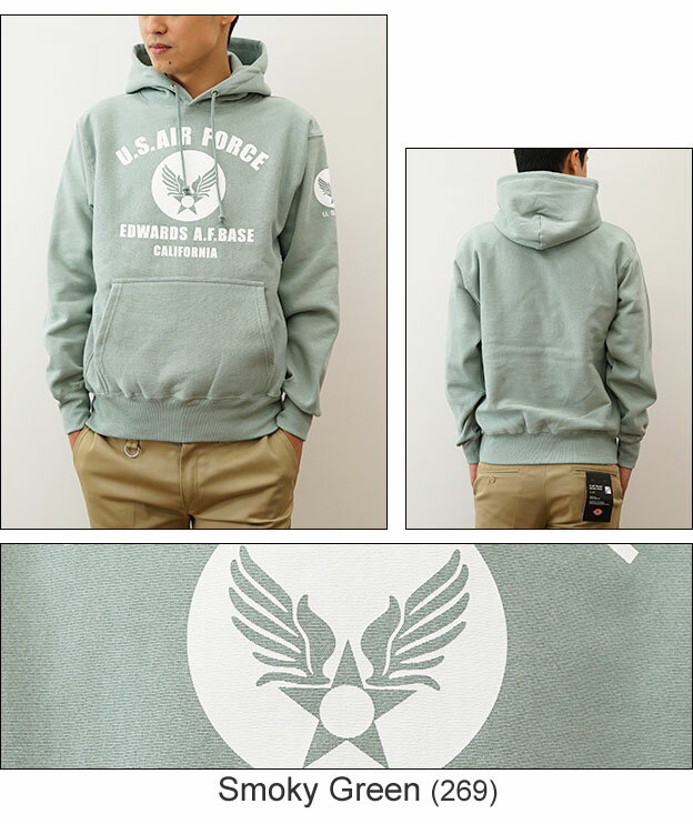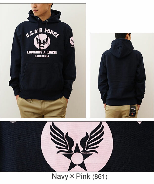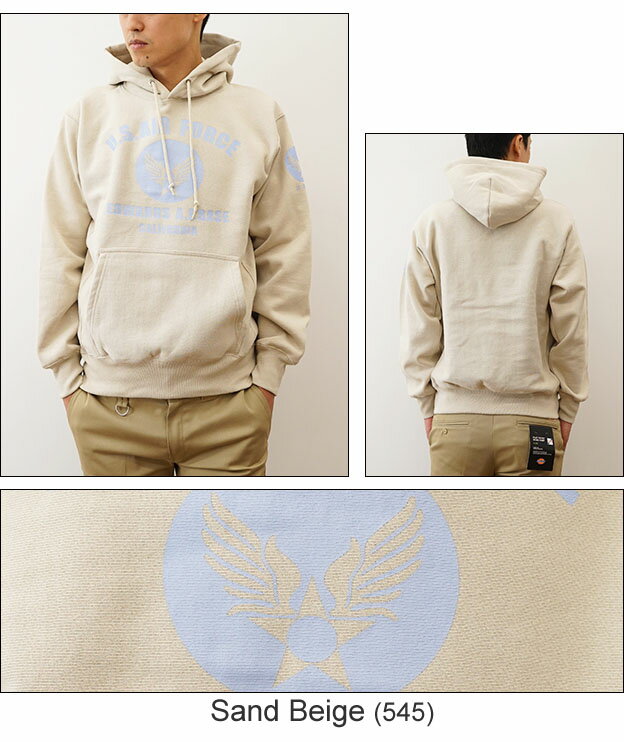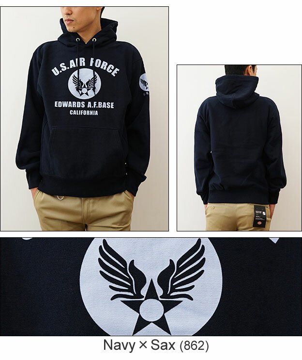 (12ozプルパーカ)『U.S. AIR FORCE CA』 オリジナル エアフォース ミリタリー プリント プルオーバー パーカー 長袖 ヘビーウエイト スウェット メンズ レディース 大きいサイズ ビッグサイズ対応 厚手 裏起毛 リバースウィーブ スエット アメリカ 空軍 USAF 【12PP-CA】