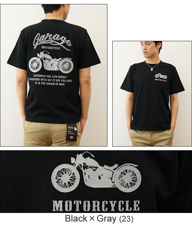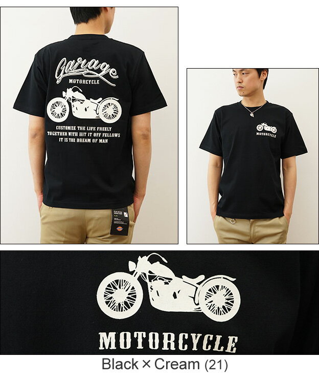 『MOTORCYCLE』 バイカー プリント 半袖 Tシャツ メンズ レディース ゆったり オーバーサイズ 大きいサイズ ビッグサイズ対応 XL 2L XXL 3L オリジナル ブランド 丸胴 厚手 ティーシャツ おしゃれ 白 黒 モーターサイクル アメリカン バイク ガレージ 【ST-MOTOR】