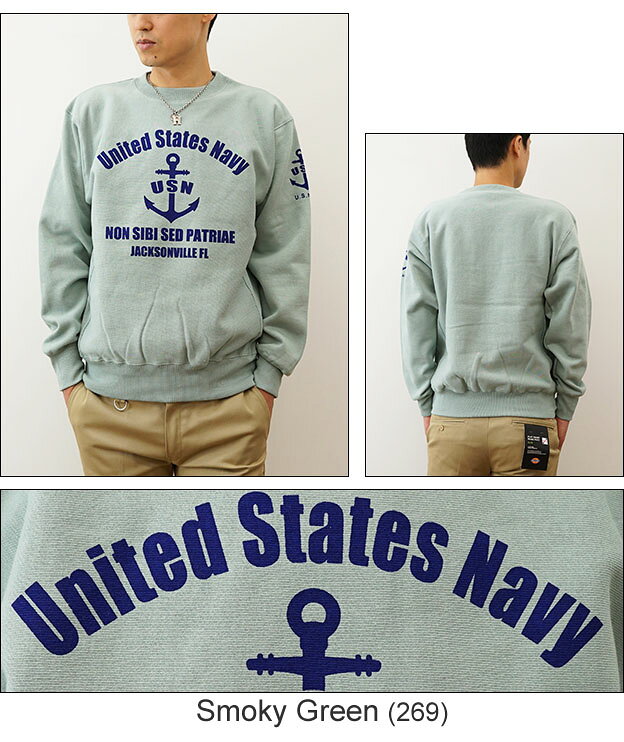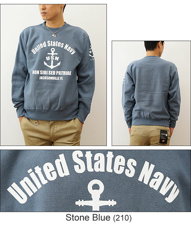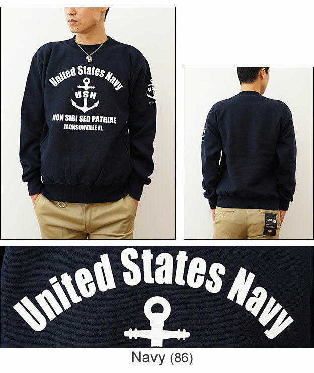 (12ozスウェット)『U.S. NAVY FL』 オリジナル ネイビー ミリタリー プリント クルーネック スエット 長袖 ヘビーウエイト トレーナー メンズ レディース 大きいサイズ ビッグサイズ対応 厚手 裏起毛 リバースウィーブ アメリカ海軍 米軍 USN イカリ マリン 【12SW-FL】