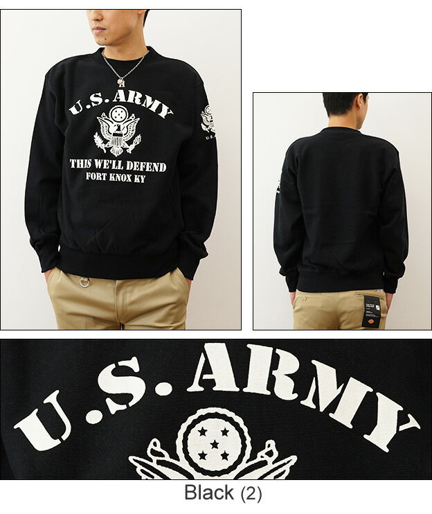 (12ozスウェット)『U.S. ARMY KY』 オリジナル アーミー ミリタリー プリント クルーネック スエット 長袖 ヘビーウエイト トレーナー メンズ レディース 大きいサイズ ビッグサイズ対応 厚手 裏起毛 リバースウィーブ アメリカ 陸軍 米軍 イーグル 鷲 【12SW-KY】