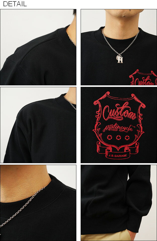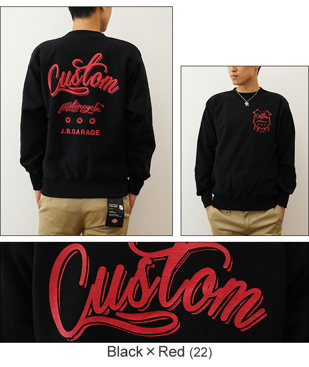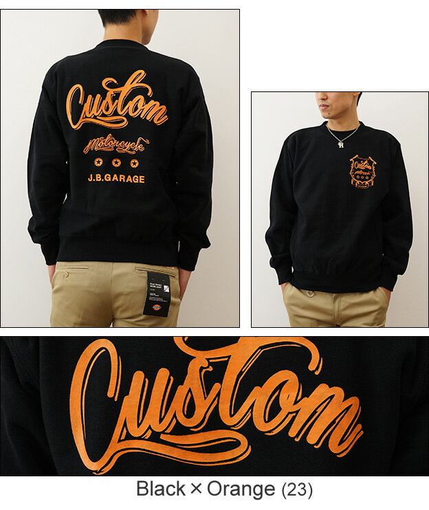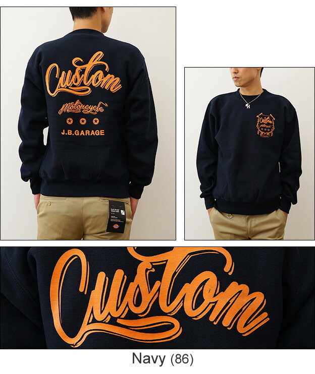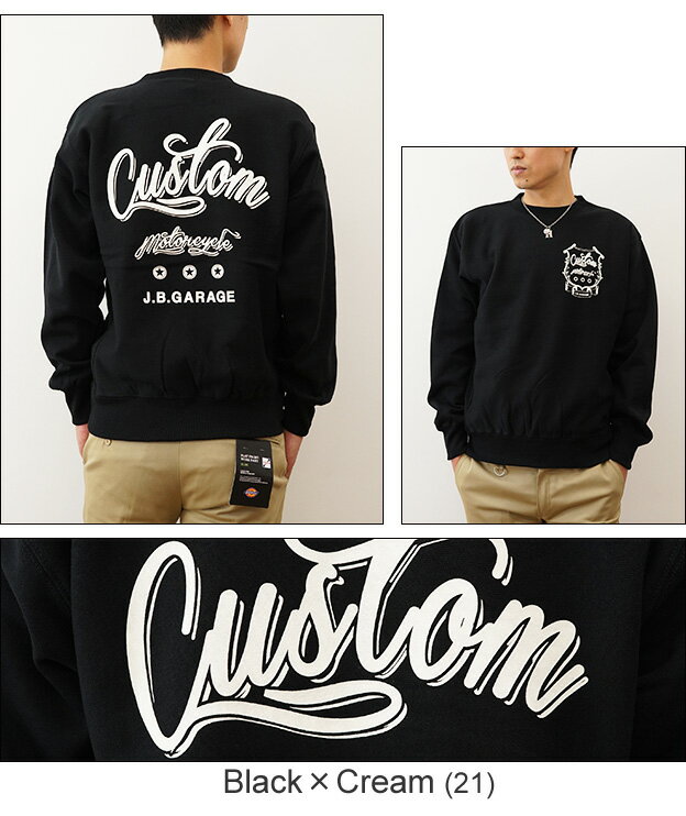 (12ozスウェット)『CUSTOM』 オリジナル バイカー プリント クルーネック スエット 長袖 ヘビーウエイト トレーナー メンズ レディース 大きいサイズ ビッグサイズ対応 厚手 裏起毛 リバースウィーブ カスタム モーターサイクル アメリカン バイク ガレージ 【12SW-CUSTO】