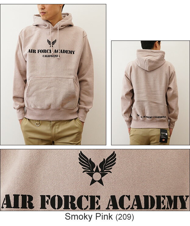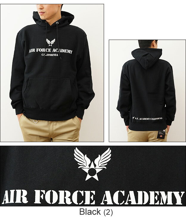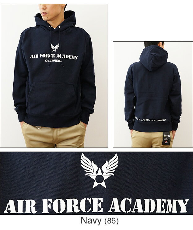 (12ozプルパーカ)『Air Force Academy』 オリジナル エアフォース ミリタリー プリント プルオーバー パーカー 長袖 ヘビーウエイト スウェット メンズ レディース 大きいサイズ ビッグサイズ対応 厚手 裏起毛 リバースウィーブ スエット アメリカ空軍 米軍 【12PP-AFACA】