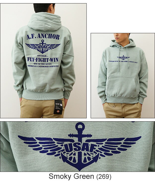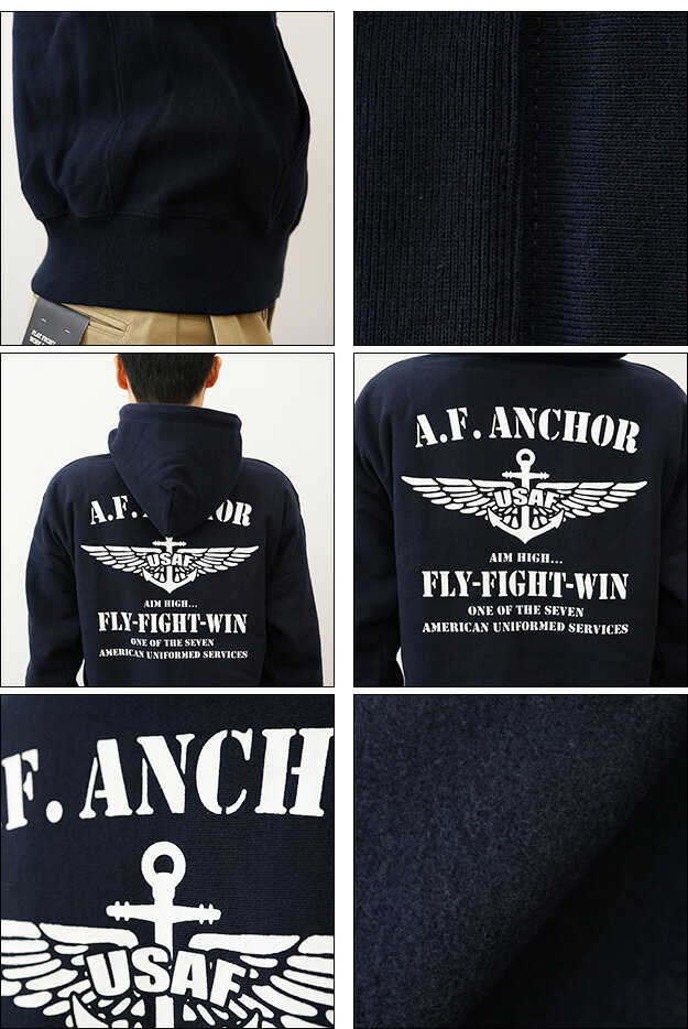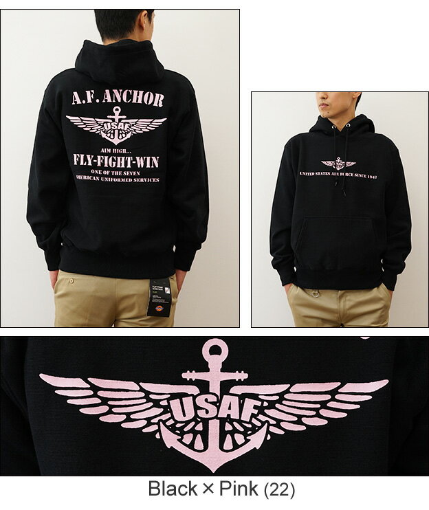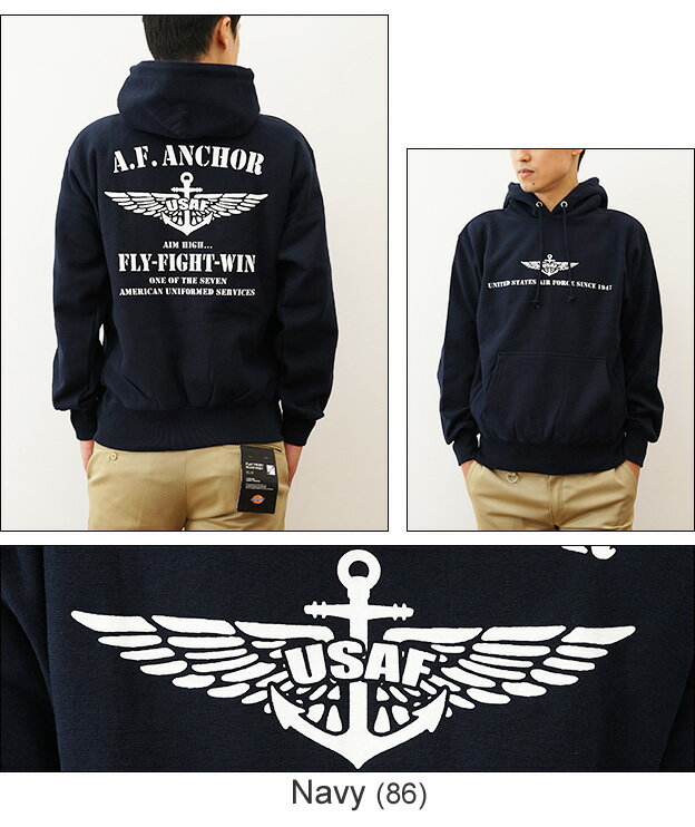 (12ozプルパーカ)『A.F. ANCHOR』 オリジナル エアフォース ミリタリー プリント プルオーバー パーカー 長袖 ヘビーウエイト スウェット メンズ レディース 大きいサイズ ビッグサイズ対応 厚手 裏起毛 リバースウィーブ スエット アメリカ 空軍 イカリ 【12PP-AFANC】