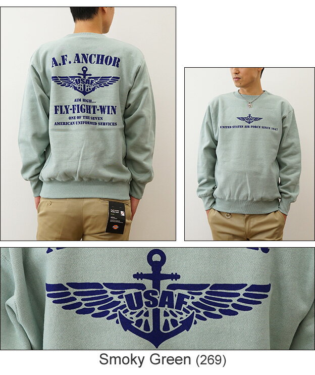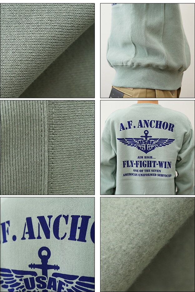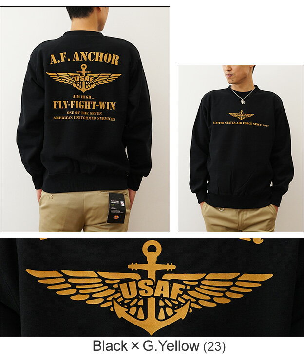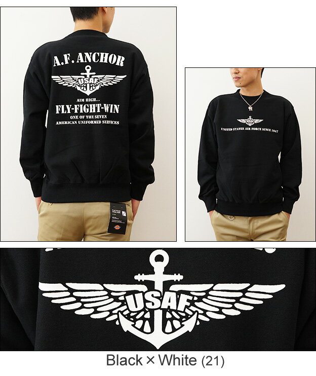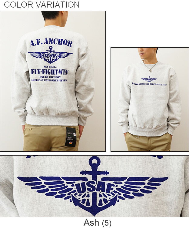 (12ozスウェット)『A.F. ANCHOR』 オリジナル エアフォース ミリタリー プリント クルーネック スエット 長袖 ヘビーウエイト トレーナー メンズ レディース 大きいサイズ ビッグサイズ対応 厚手 裏起毛 リバースウィーブ アメリカ 空軍 Air Force イカリ 【12SW-AFANC】