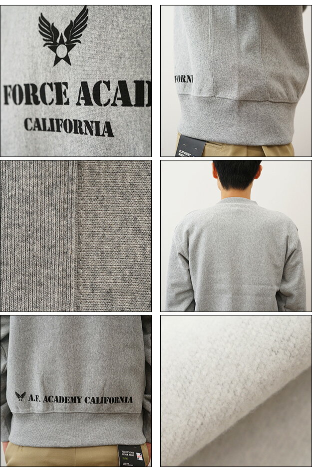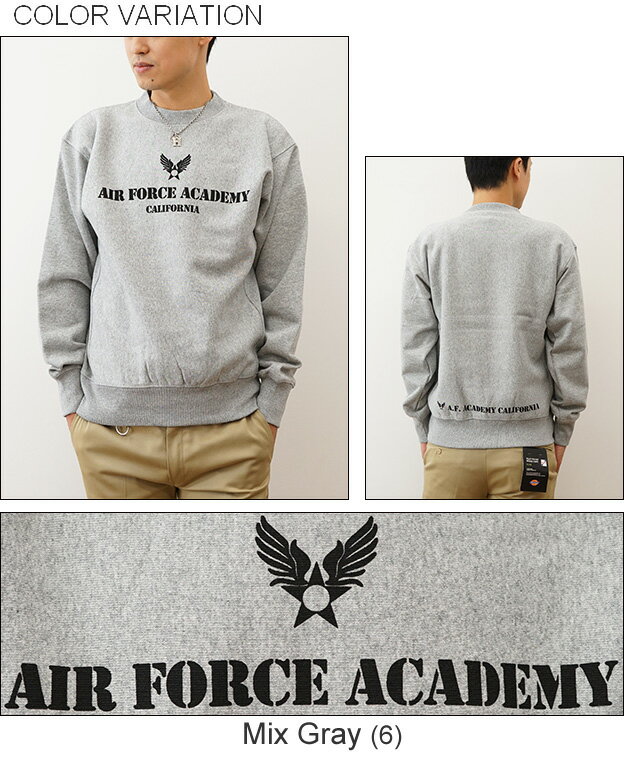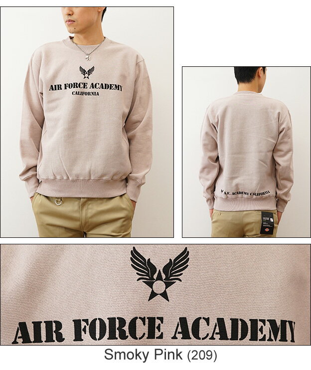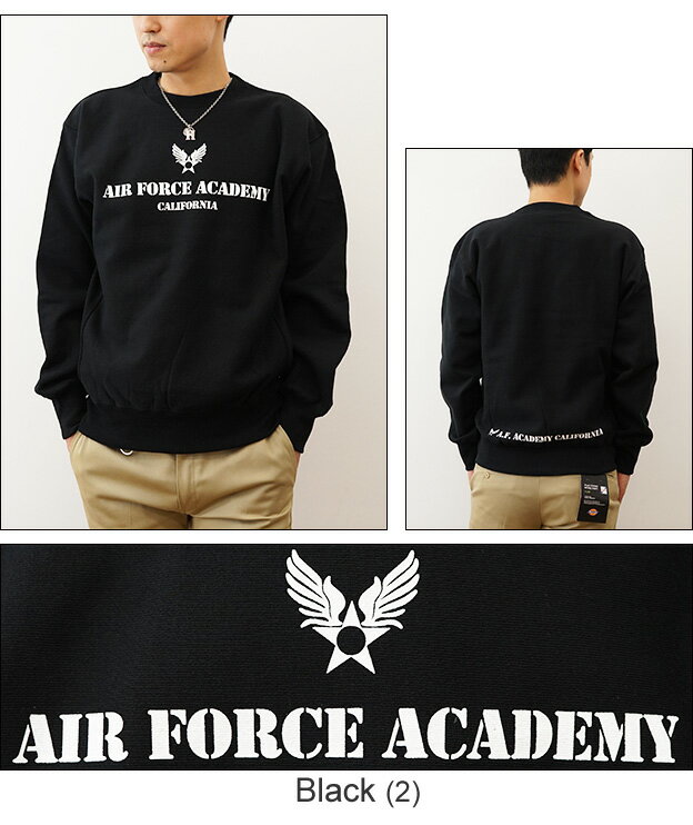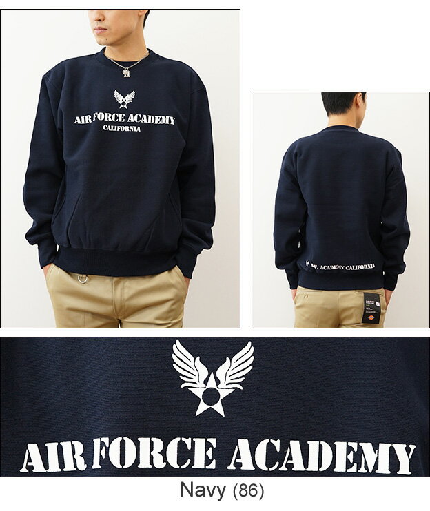 (12ozスウェット)『Air Force Academy』 オリジナル エアフォース ミリタリー プリント クルーネック スエット 長袖 ヘビーウエイト トレーナー メンズ レディース 大きいサイズ ビッグサイズ対応 厚手 裏起毛 リバースウィーブ アメリカ空軍 米軍 士官学校 【12SW-AFACA】