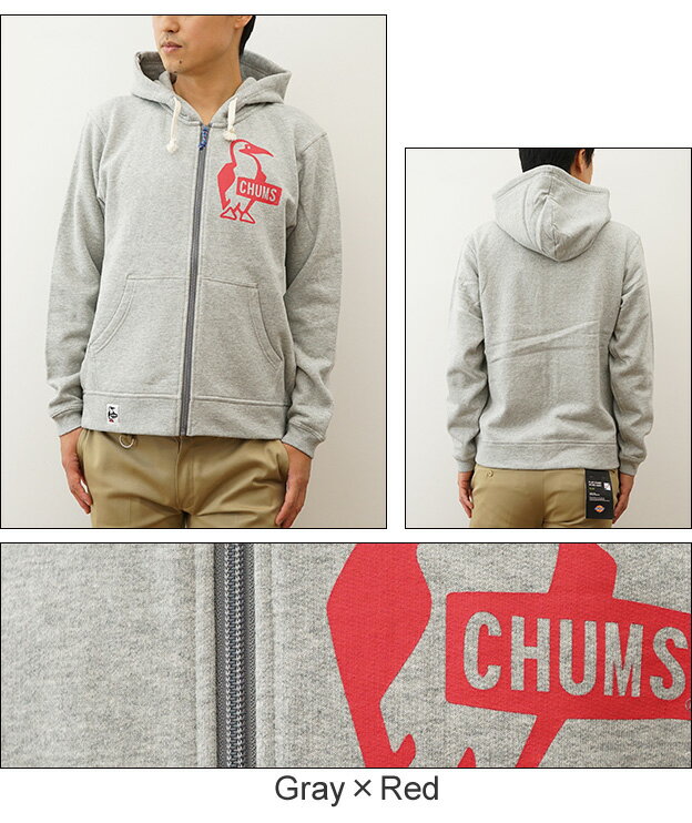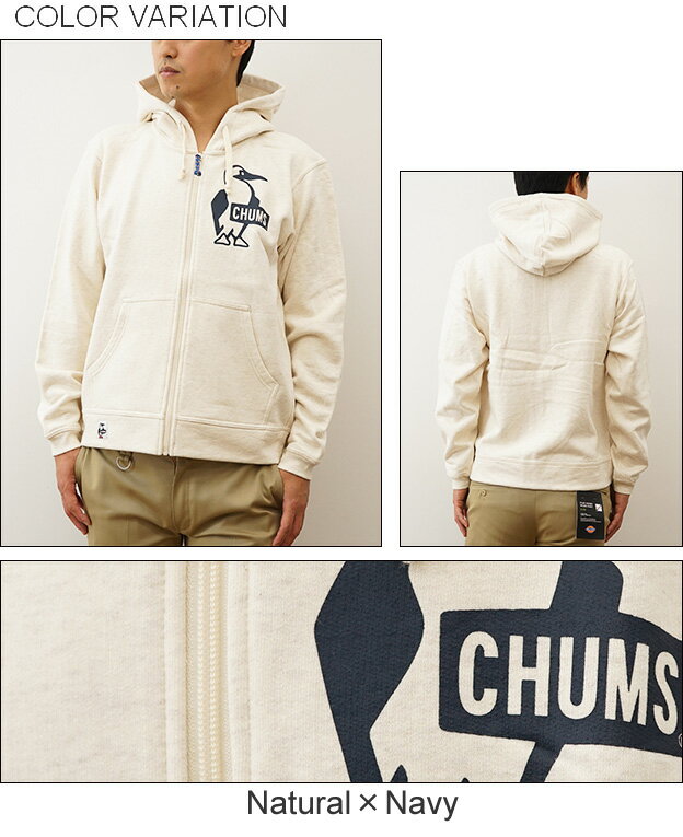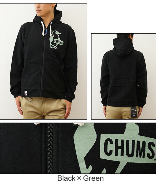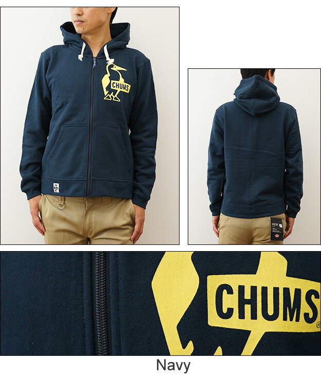 CHUMS(チャムス) ブービー ロゴ ジップ パーカー スウェット フーディ メンズ レディース スエット アウトドア キャンプ アメカジ 大きい サイズ XL 裏起毛 暖かい アメリカ USA コットン 綿 定番 人気 春 秋 冬 コーデ 黒 白 ブラック グレー ネイビー 【CH00-1420】