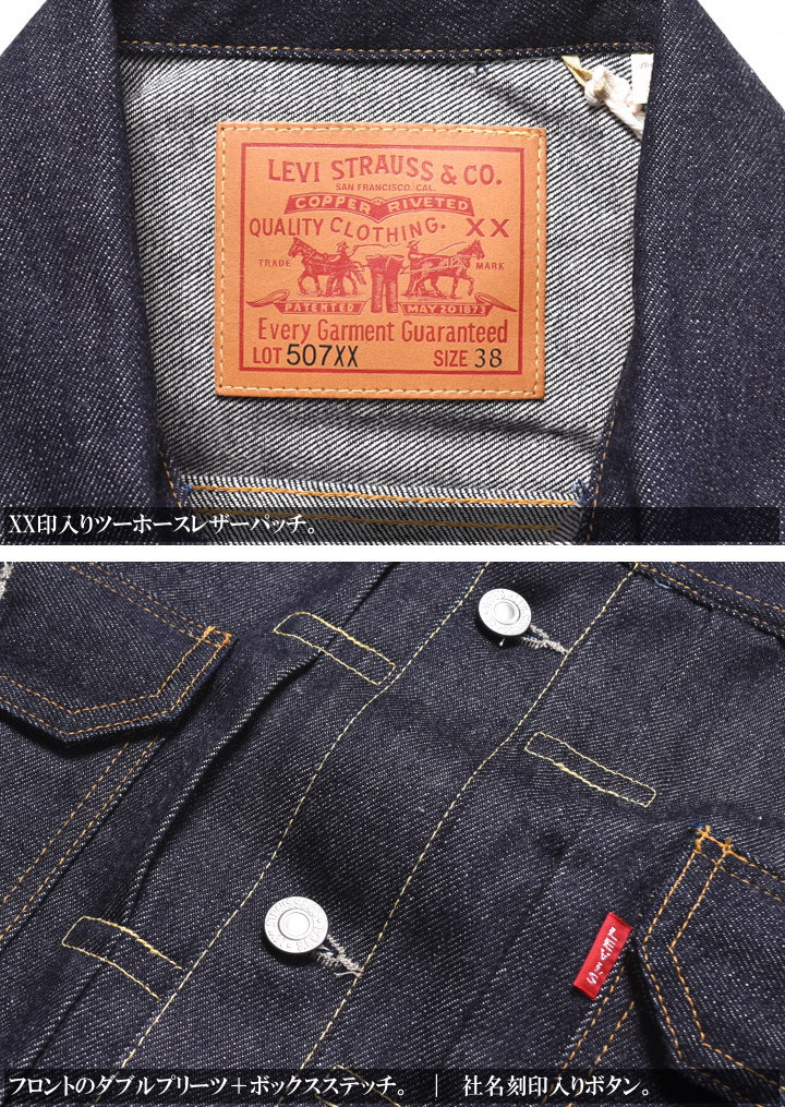 LEVI'S VINTAGE CLOTHING (LVC) リーバイス ヴィンテージ クロージング 日本製 TYPE II JACKET 1953モデル 507XX 2ndタイプ デニムジャケット ORGANIC リジッド(未洗い) 70507-0066【復刻】