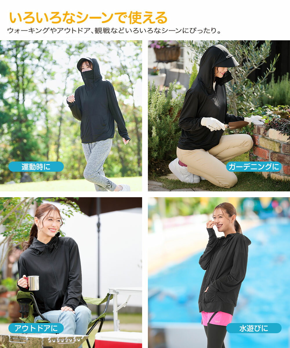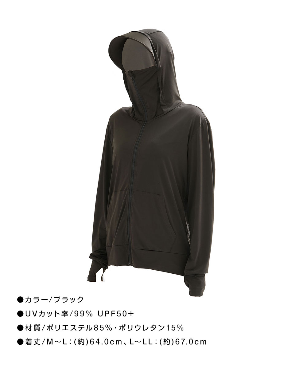uvカット パーカー 冷感 レディース 薄手 夏 つば付き 帽子付き 指穴 ゆったり 大きいサイズ ラッシュガード トップス 羽織り 長袖 接触冷感 涼しい ひんやり 大夏 日焼け防止 日焼け対策 紫外線対策 UPF50+ UVカット率 99% Q-MAX 0.3 UV&クール顔までガードパーカー 184
