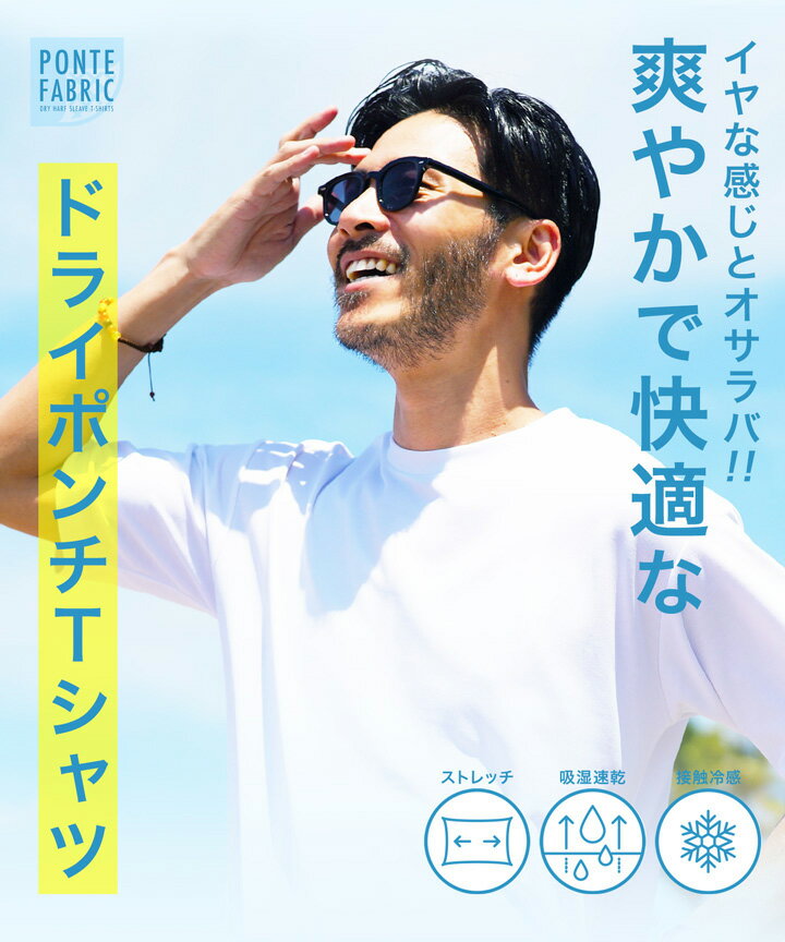 【2点以上で11%オフCP配布中】接触冷感 メンズ Tシャツ 速乾◆ドライポンチ プレミアムTシャツ◆半袖Tシャツ 吸湿 半袖 ストレッチ 伸縮性 カットソー ブランド おしゃれ 無地 白Tシャツ クルーネック 服 春 春服 春物 夏 夏服 夏物 黒 白 グレー