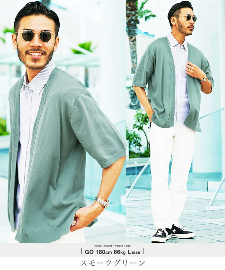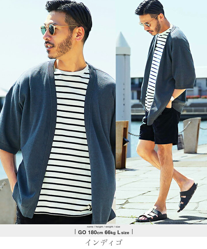 【夏セール2024】◆サマー5分袖カーディガン◆サマー カーディガン メンズ ニットカーディガン cardigan オフィス トップス メンズファッション ゆったり 半袖 5分袖 ブラック グレー ブルー インディゴ 春 春服 春物 夏 夏服 夏物