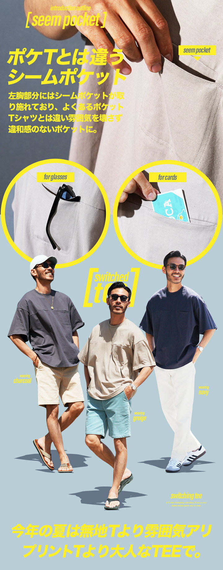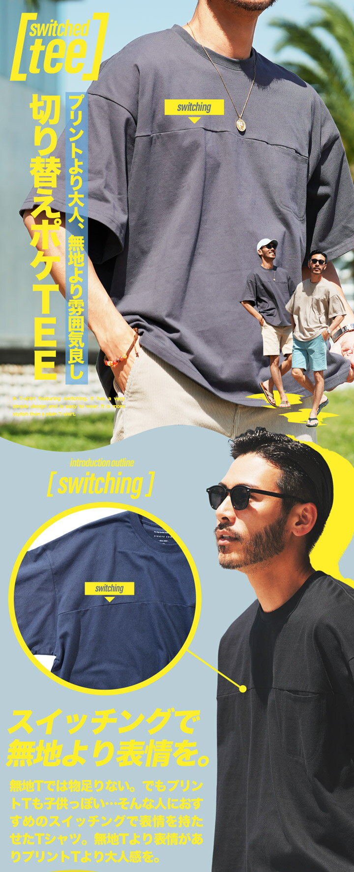 【SALE】切り替えTシャツ◆スイッチングポケットTシャツ◆Tシャツ 半袖 メンズ 半袖Tシャツ 胸ポケット ポケT 伸縮性 カットソー ブランド JIGGYSSHOP おしゃれ 白Tシャツ クルーネック 服 春 春服 春物 夏 夏服 夏物 黒 白 チャコール