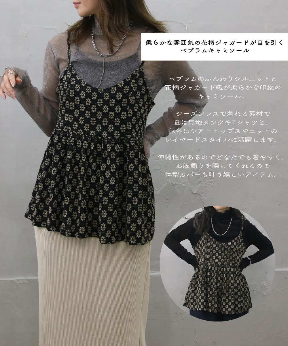 花柄ジャガードキャミソール ペプラム ふんわり フェミニン ドット キャミビスチェ トップス 重ね着 レイヤード 【単品でメール便可】シンプル ゆったり シルエット 大人 ペプラム 柄 プチプラ お洒落 大人カジュアル ママコーデ 20代 30代