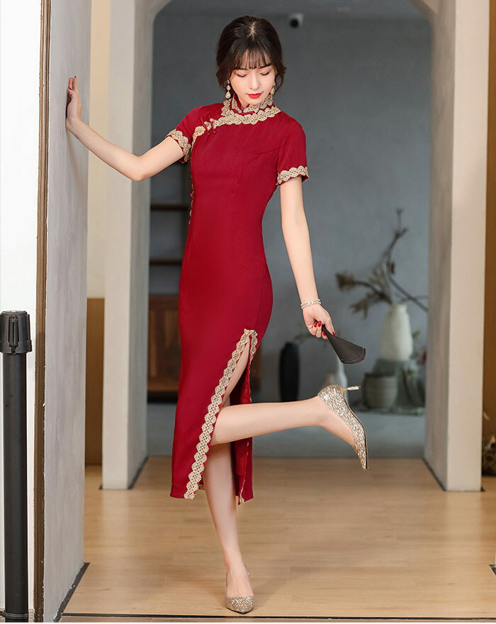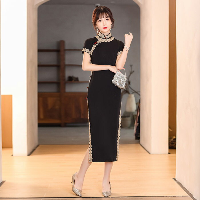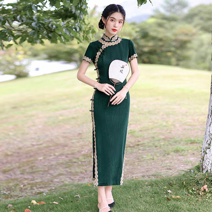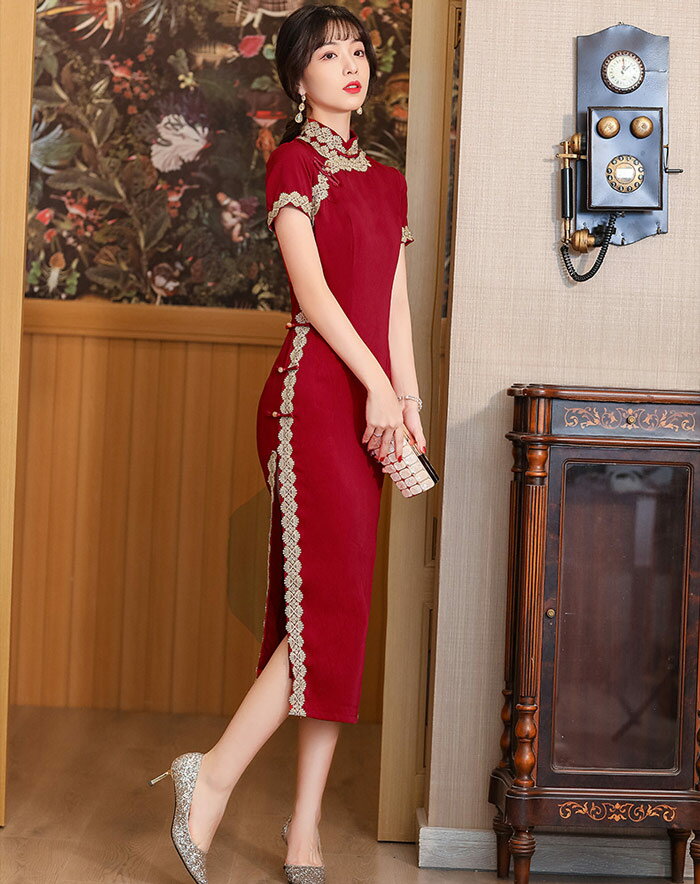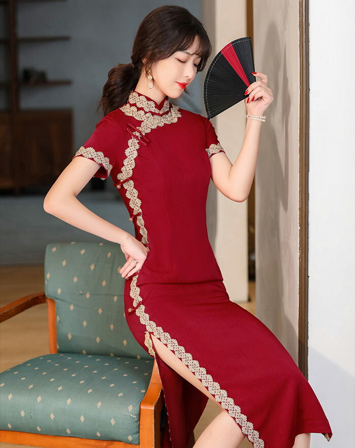 ロングチャイナドレス レース パーティードレス チャイナ服 チャイナ風 ワンピース 大きいサイズ ロング丈 チャイナ ワンピース 美シルエット チャイナドレス 結婚式 二次会 2次会 パーティー お呼ばれドレス 演奏会 発表会 イベント