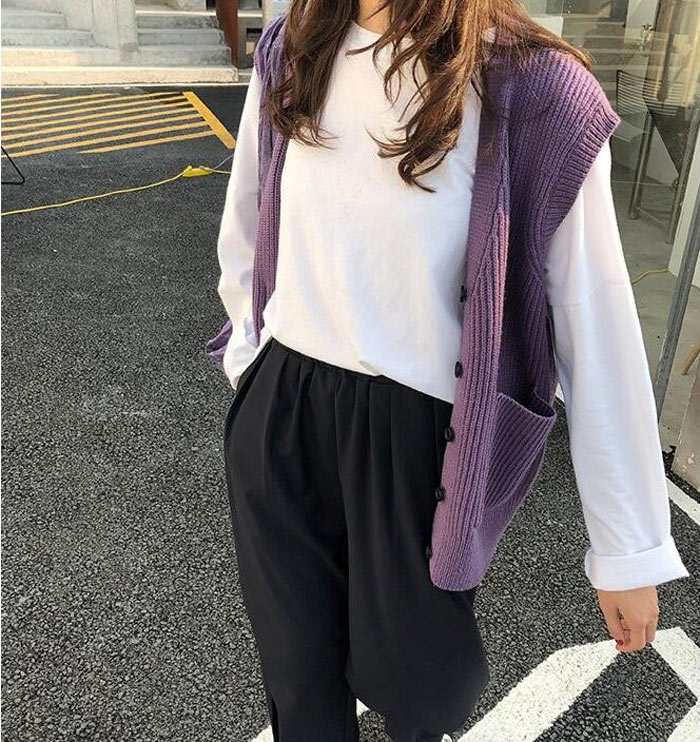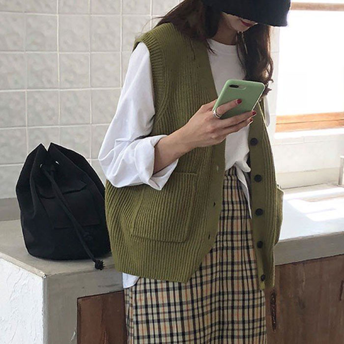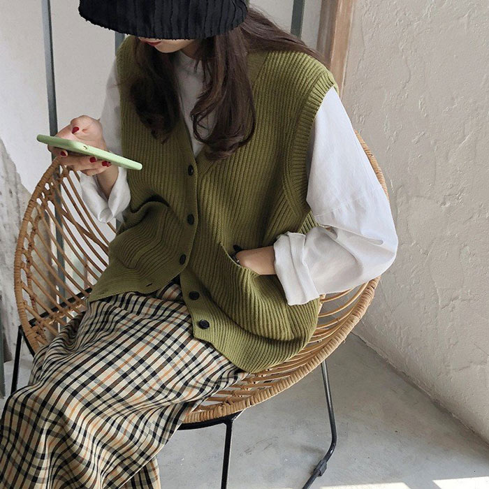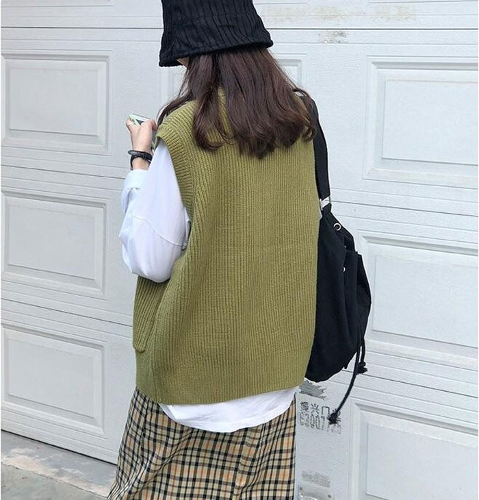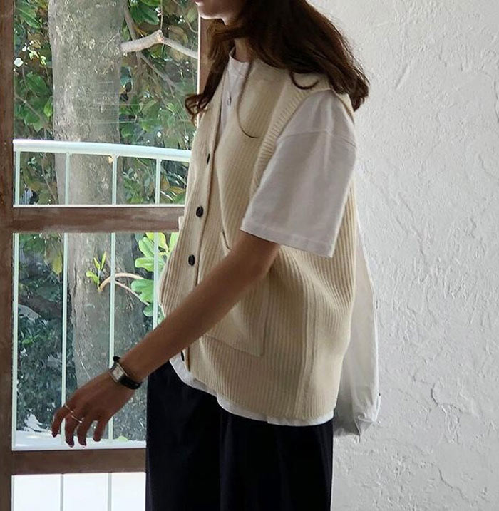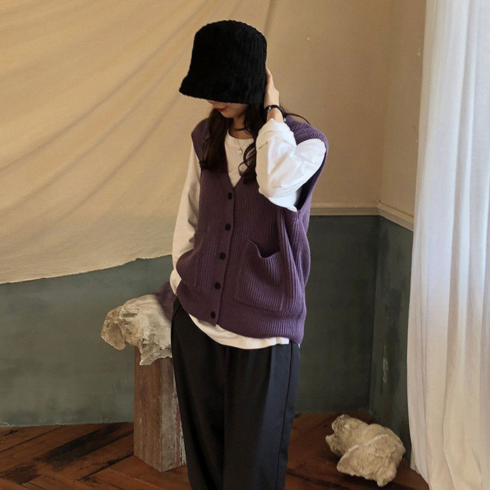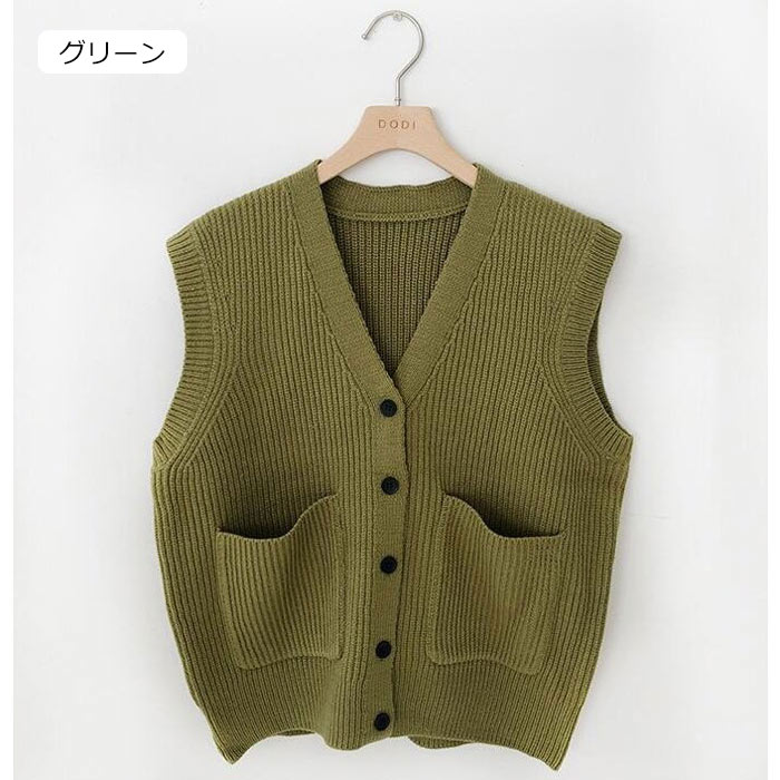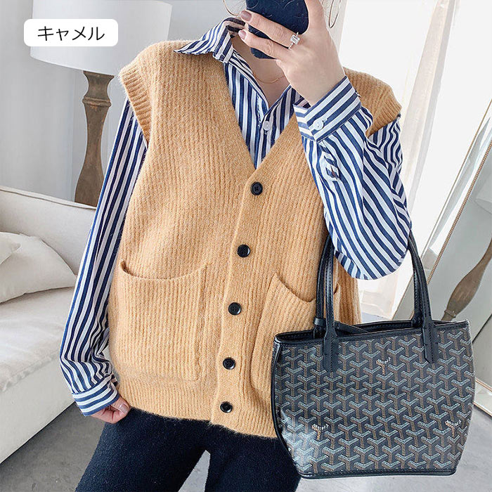 ニットベスト レディース 前開き トップス アウター 上着 羽織 セーター ナチュラル 秋 冬 Vネック 無地 ゆったり ポケット付き 重ね着 レイヤード ニット ベスト 普段着 通勤 通学 おしゃれ 春 秋 冬
