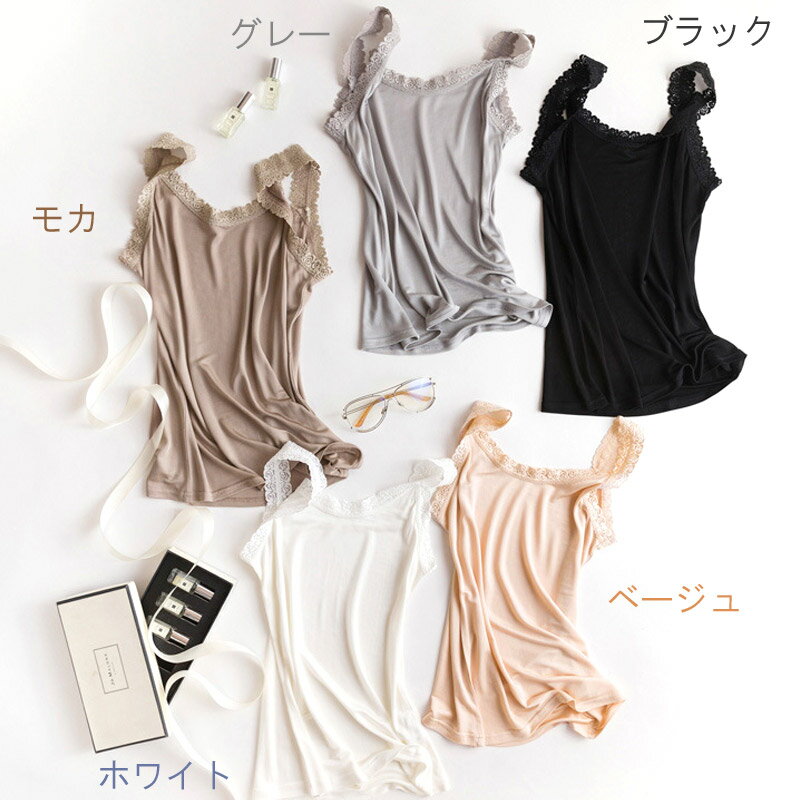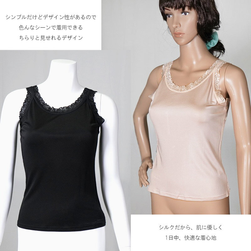 シルク 絹 タンクトップ シャツ SILK レース デザイン オシャレ ドレスアップ 肌着 インナー レディース ゆったり 大きいサイズ M L LL 3L 通気性 速乾 快適 しっとり サラサラ 冷え取り 汗取り