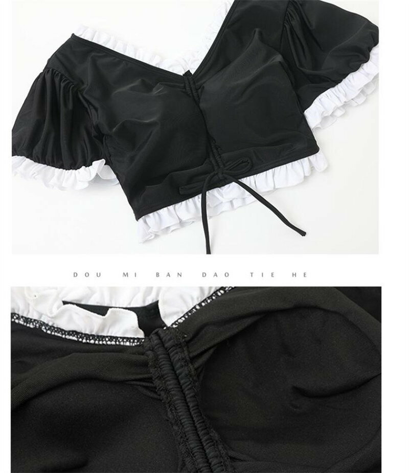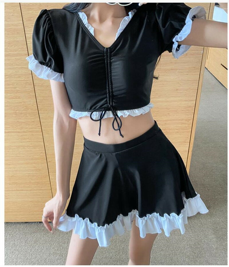 水着2点セット レディース 「S~XL」体型カバー 水着 セパレート キュロット ビキニセット小胸バンドゥ オシャレ韓国風 可愛い`スイムウェア ママ水着 温泉 かわいい バックシャン おしゃれ ぽっちゃり カバーアップ 小胸 バスト 盛れる ブラック 黒