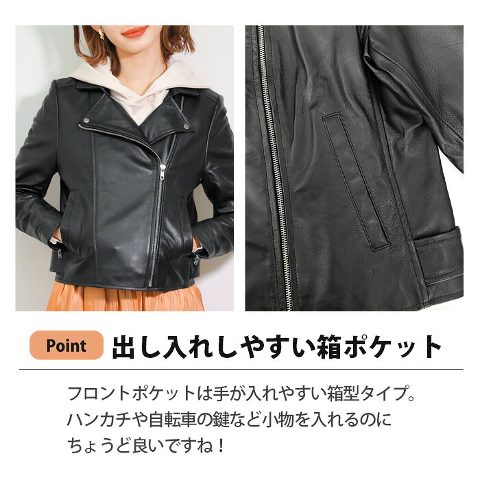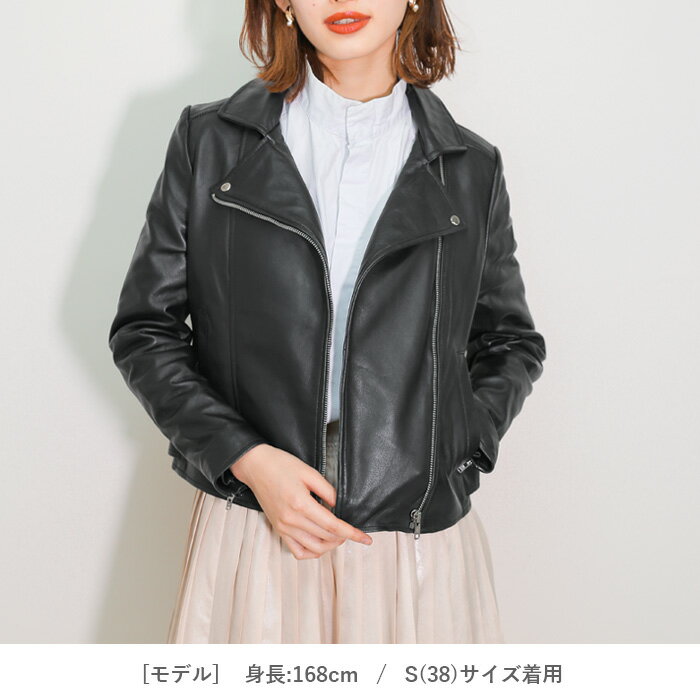 レザージャケット ライダースジャケット ダブルライダース 革ジャン レディース 春 本革 ラムレザー ジップアップ ブラック S-XLサイズ L1024