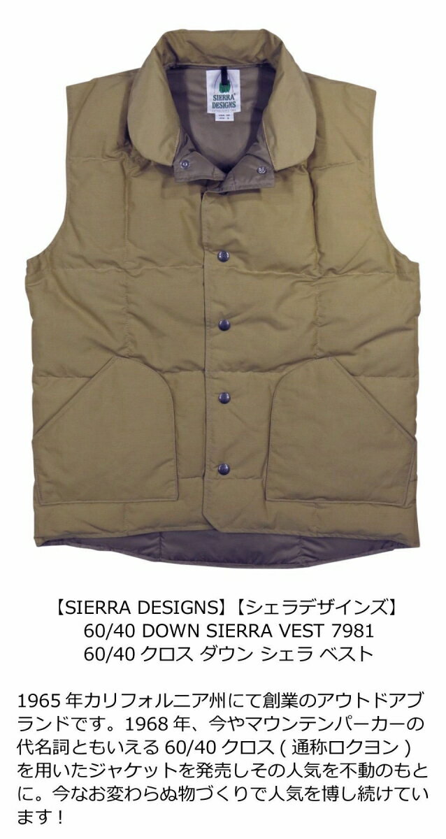 【定番 6色5サイズ】 jd351 新品 SIERRA DESIGNS 60/40クロス ダウンベスト 7981 メンズ シェラデザインズ 60/40 DOWN SIERRA VEST ダウン シェラ ベスト 【smtb-kd】