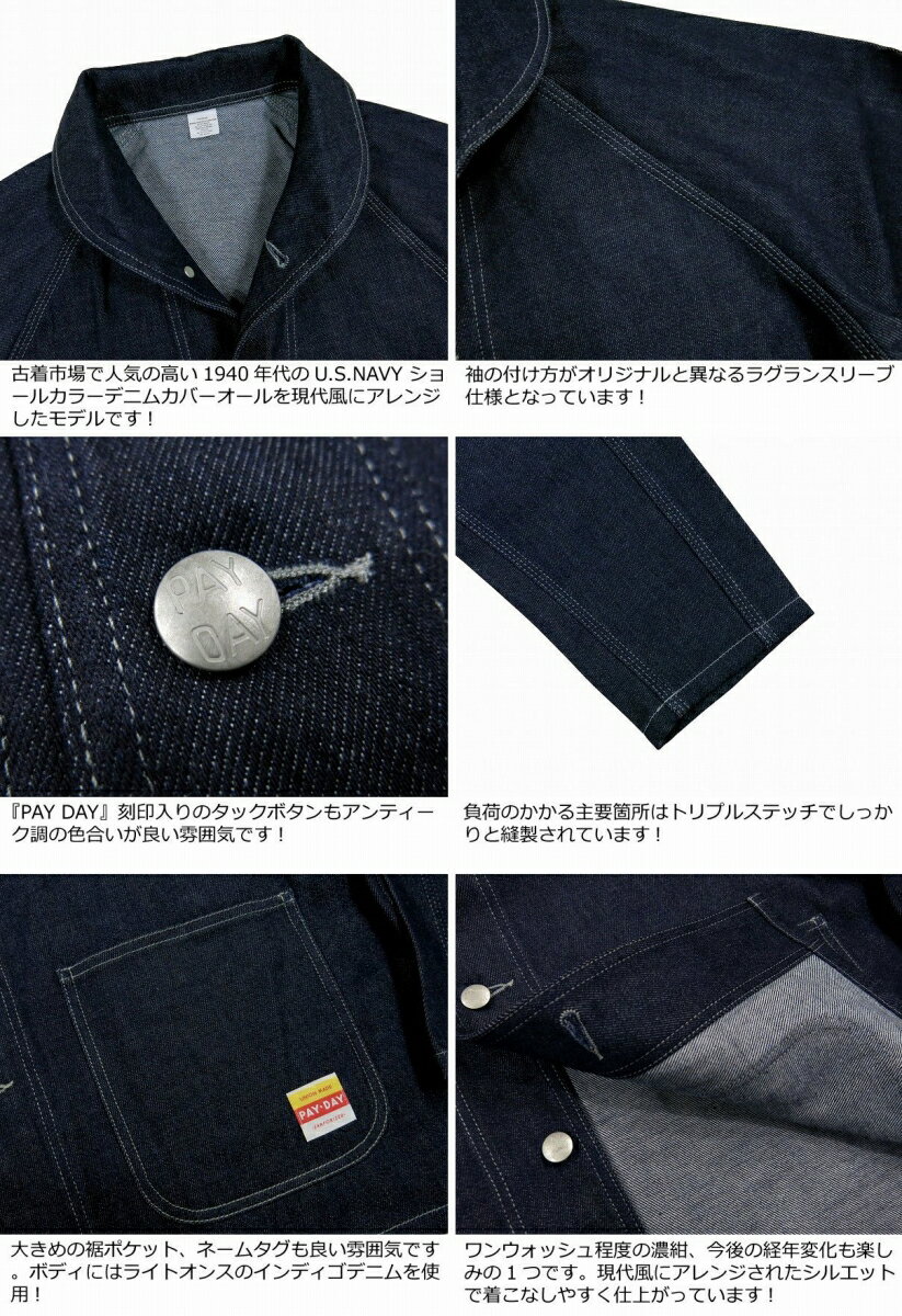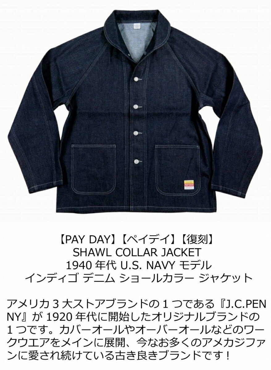 【4サイズ】 ac901 新品 PAY DAY 1940年代 U.S. NAVY 復刻モデル インディゴ デニム ショールカラー ジャケット PD-006K メンズ ペイデイ デニムジャケット US NAVY SHAWL COLLAR JACKET ワークジャケット PAYDAY JC PENNY 【smtb-kd】