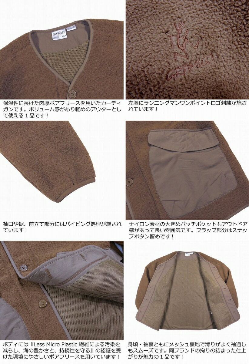 【2色5サイズ】 gn402 新品 GRAMICCI グラミチ BOA FLEECE CARDIGAN パイルボア フリース カーディガン ジャケット GUJK-21F074 メンズ アウトドア 【smtb-kd】