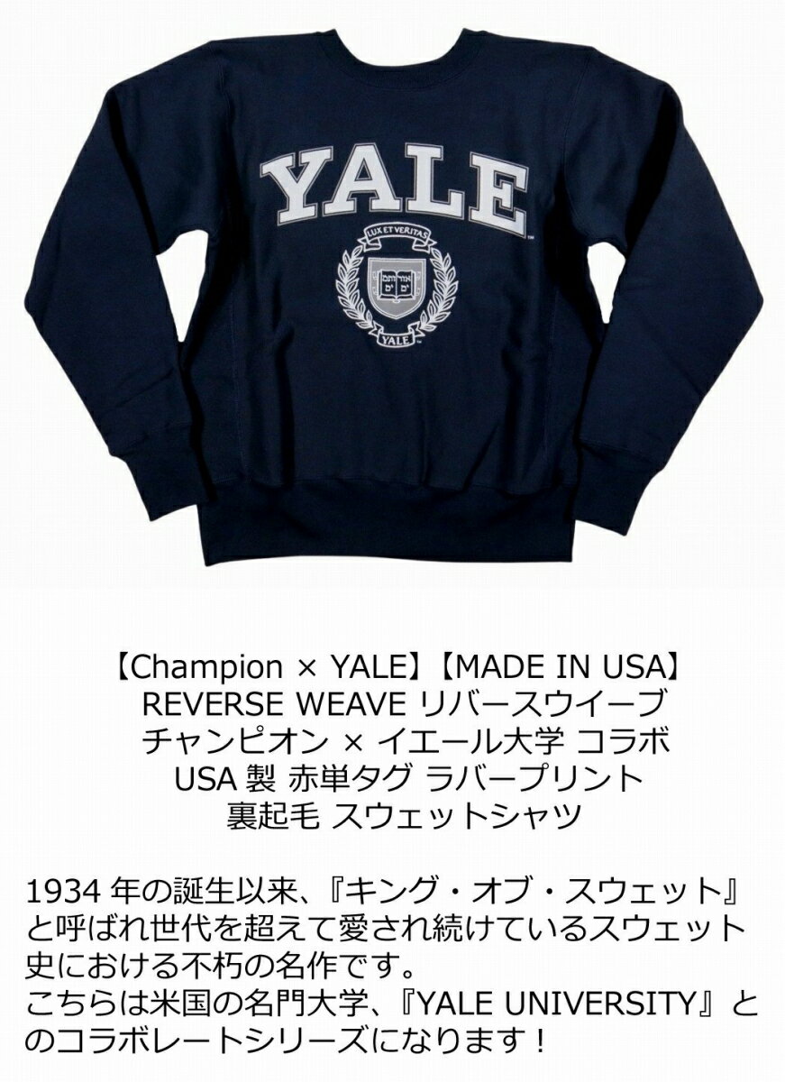 【2色4サイズ】jf061 新品 Champion × YALE コラボ USA産 赤単タグ カレッジプリント リバースウイーブ スウェットシャツ C5-U006 メンズ チャンピオン イエール大学 REVERSE WEAVE トレーナー スエット MADE IN USA 【smtb-kd】