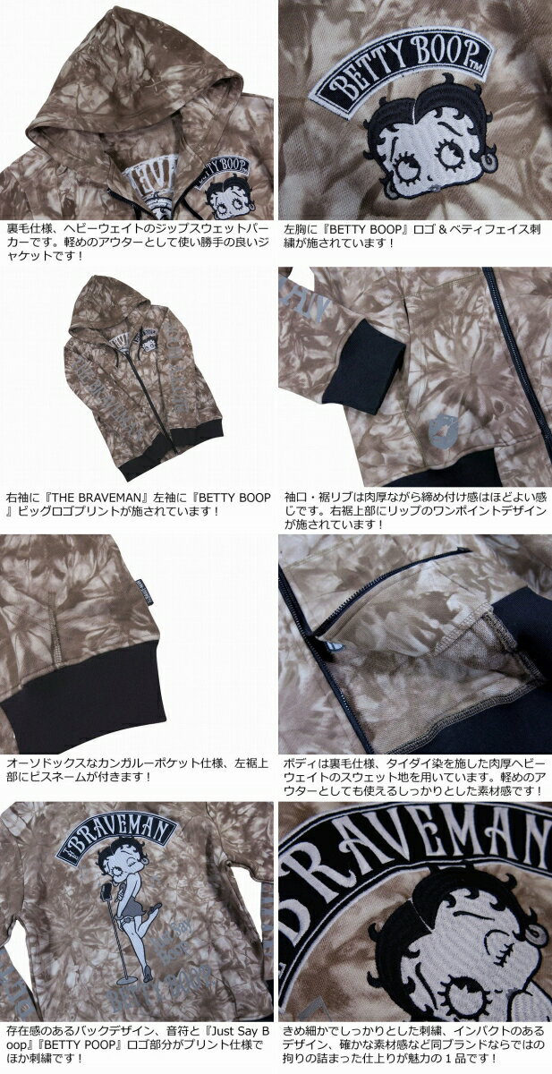 【4サイズ】 nc742 新品 THE BRAVE-MAN × BETTY BOOP ザ・ブレイブマン × ベティ・ブープ コラボ 刺繍 タイダイ柄 ジップパーカー BBB-2205 メンズ フード ジャケット 【smtb-kd】