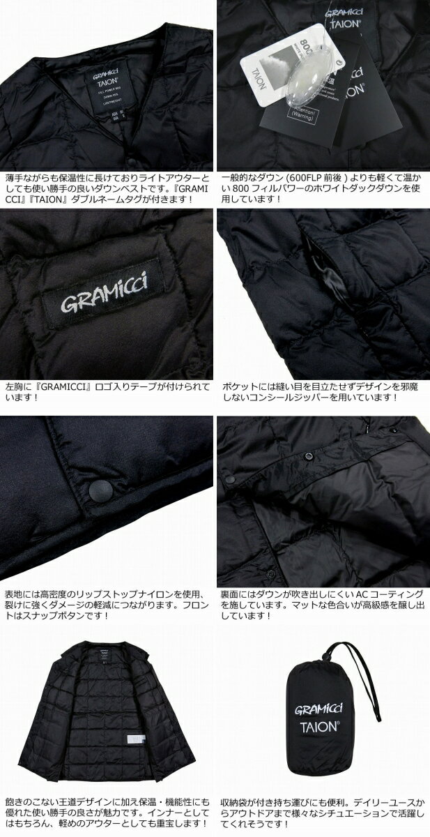 【4色5サイズ】 gn541 新品 GRAMICCI × TAION グラミチ × タイオン コラボ INNER DOWN VEST Vネック インナー ダウンベスト G2FU-J083-TG メンズ アウトドア 【smtb-kd】
