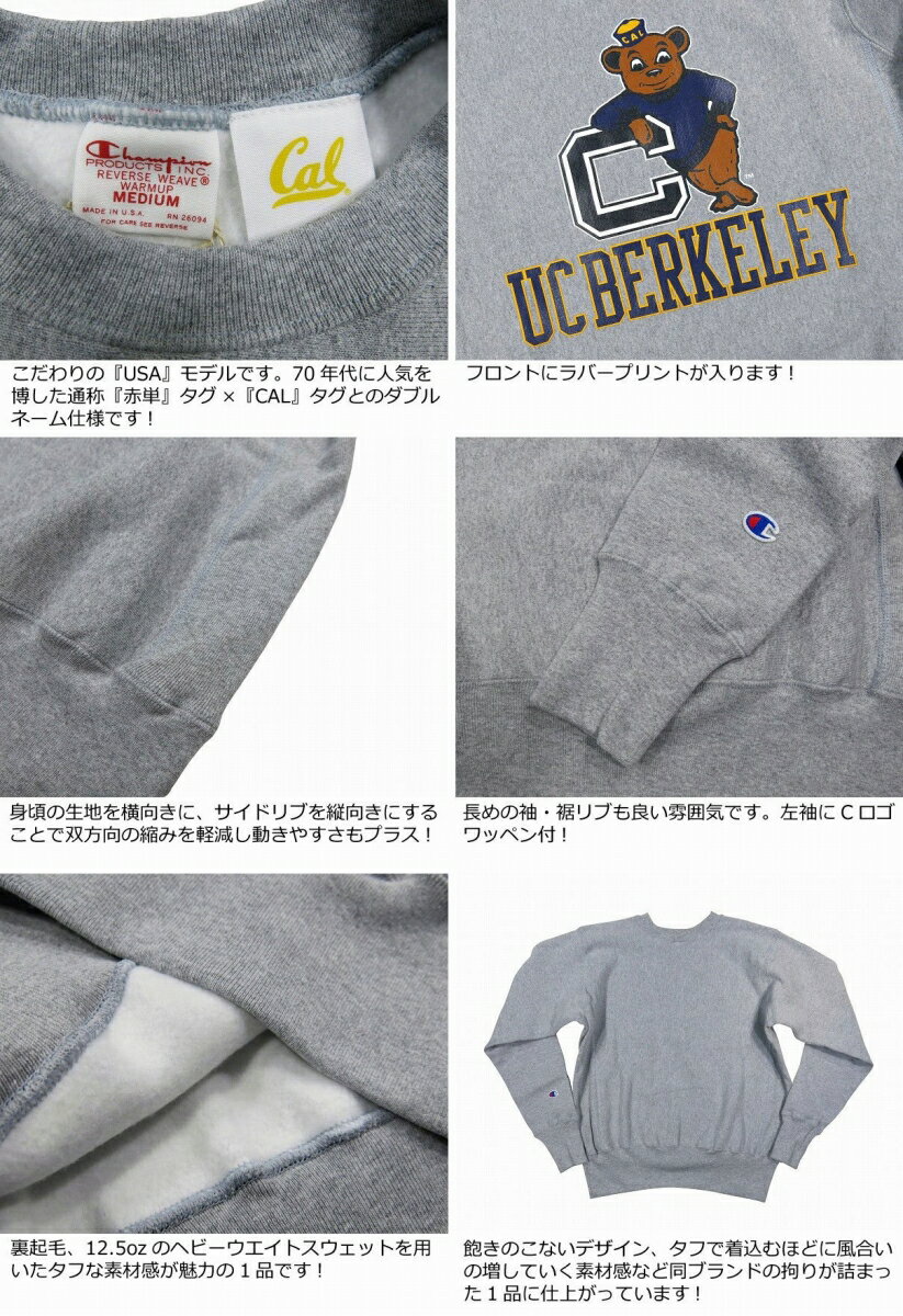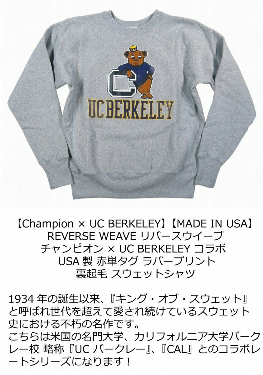 【2色5サイズ】jf971 新品 Champion × UC BERKELEY コラボ USA産 赤単タグ カレッジプリント リバースウイーブ スウェット シャツ C5-W006 メンズ チャンピオン バークレー大学 REVERSE WEAVE トレーナー スエット MADE IN USA 【smtb-kd】
