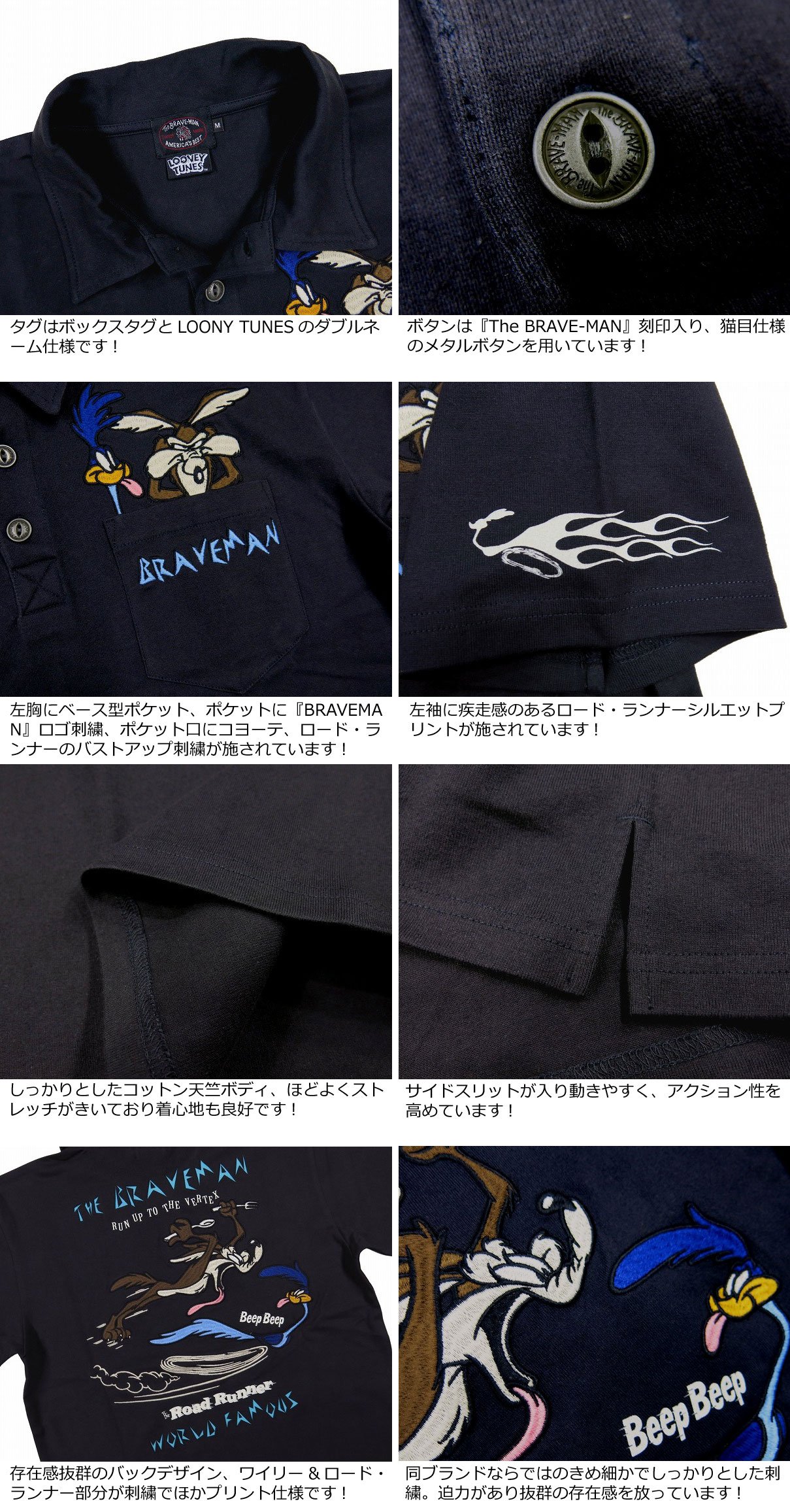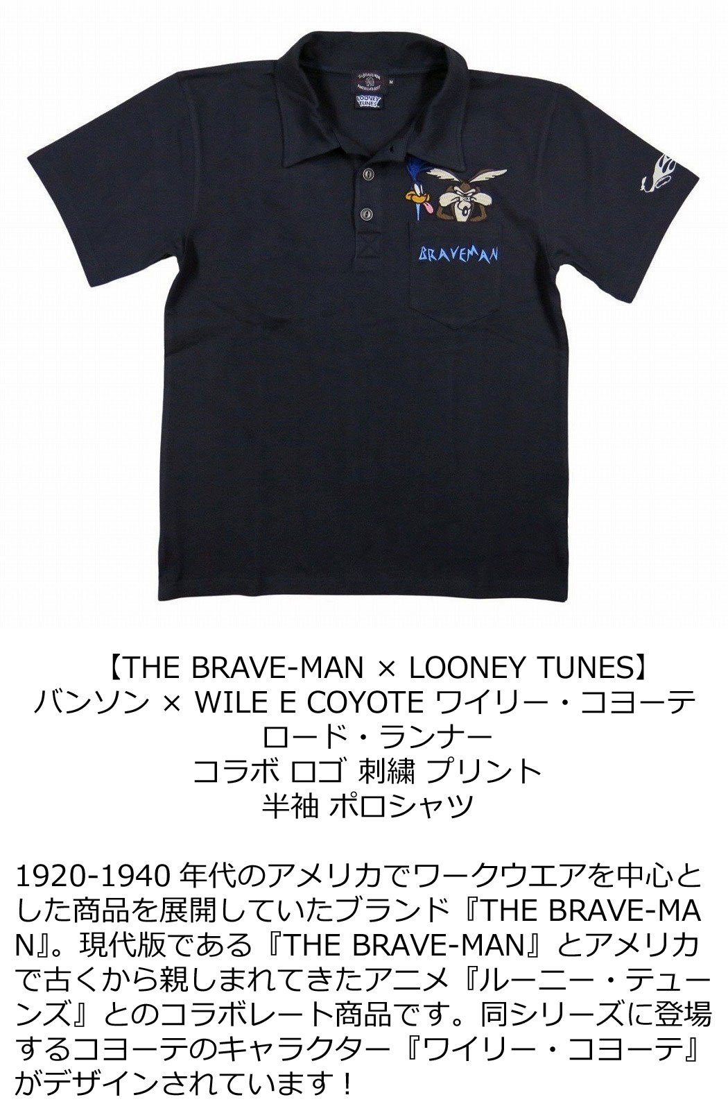 【2色4サイズ】 nd421 新品 THE BRAVE-MAN × LOONEY TUNES ザ・ブレイブマン × ワイリー・コヨーテ刺繍 コラボ 半袖 ポロシャツ LTB-2305 メンズ ルーニーチューン ロード・ランナー 【smtb-kd】