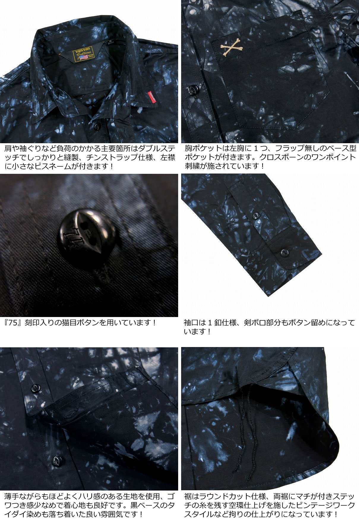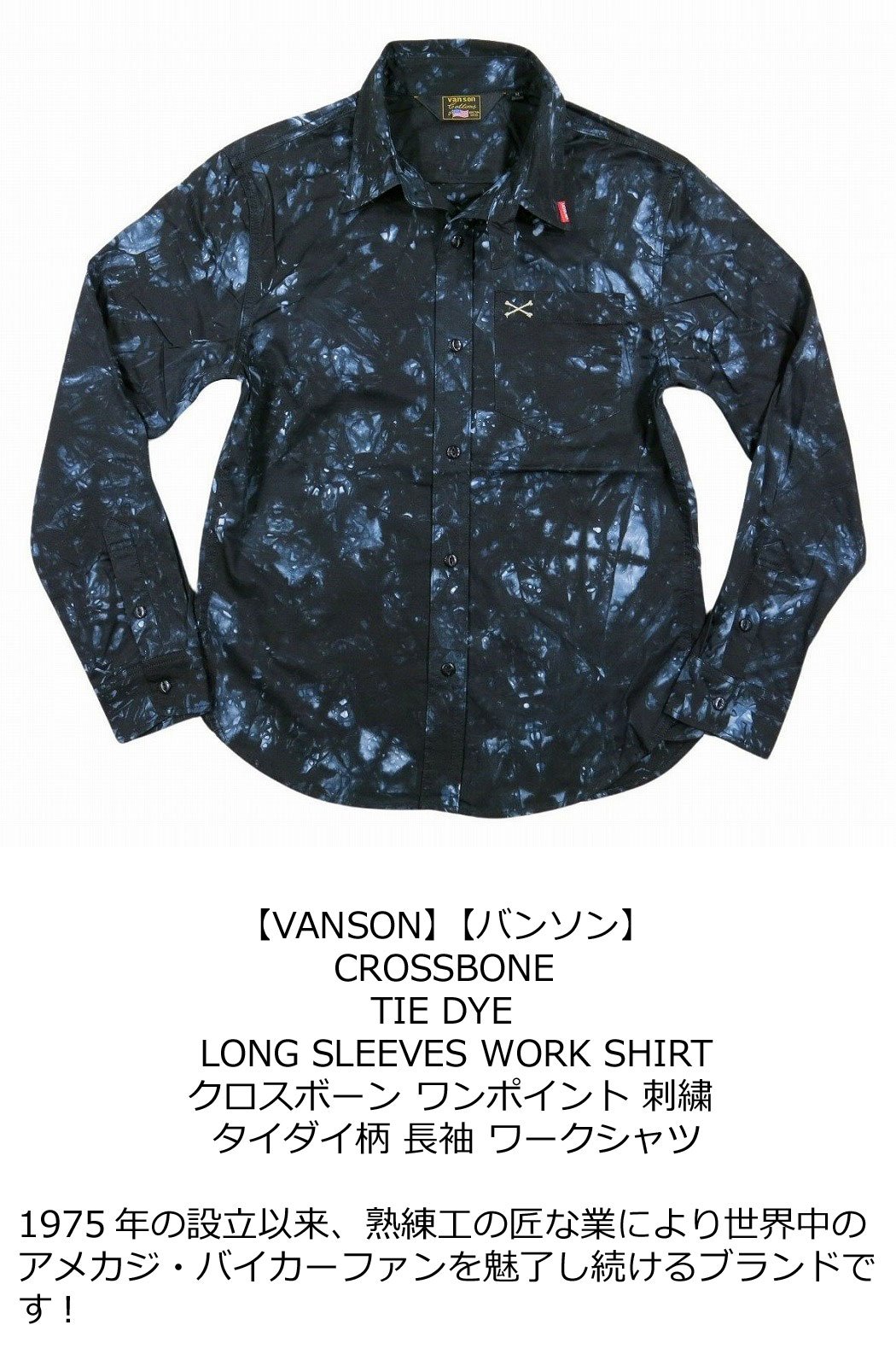 【4サイズ】 nc426 新品 VANSON クロスボーン刺繍 タイダイ柄 長袖 ワークシャツ NVSL-803 メンズ バンソン CROSSBONE TIE DYE LONG SLEEVES WORK SHIRT ヴァンソン 【smtb-kd】
