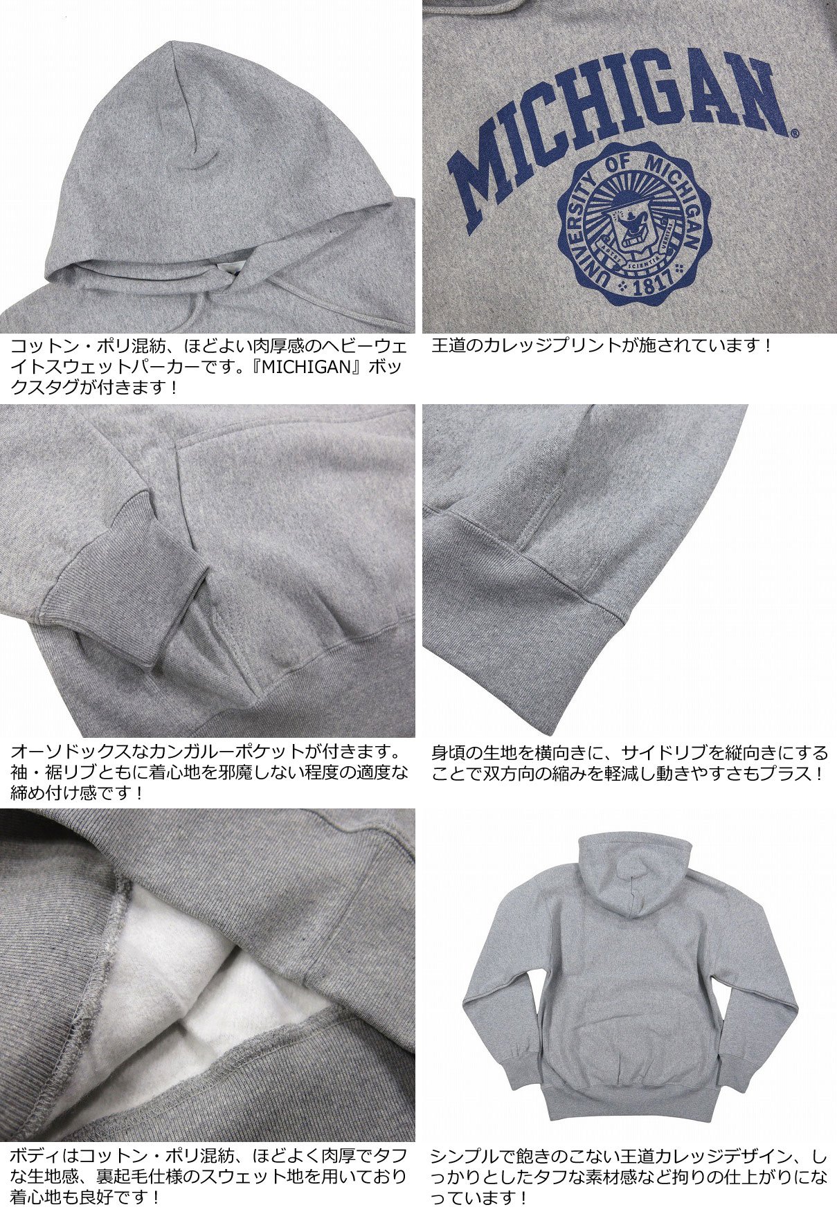 【4サイズ】 jg591 新品 MICHIGAN ミシガン大学 カレッジプリント ヘビーウェイト 長袖 プルオーバー スウェットパーカー MCGN-019 メンズ L/S HEAVY WEIGHT PULLOVER HOODIE 裏起毛 フード スエット トレーナー 【smtb-kd】