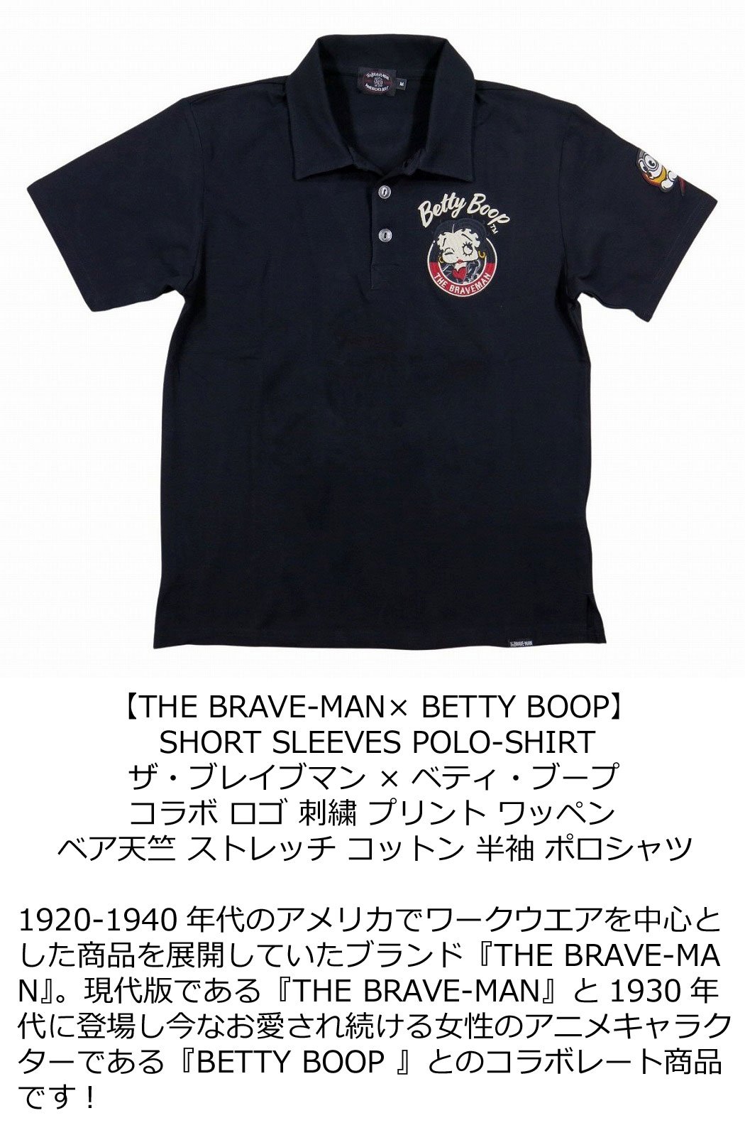 【4サイズ】 nd751 新品 THE BRAVE-MAN × BETTY BOOP ザ・ブレイブマン × ベティ・ブープ コラボ ストレッチ コットン 半袖 ポロシャツ BBB-2422 メンズ SHORT SLEEVES POLO-SHIRT 【smtb-kd】