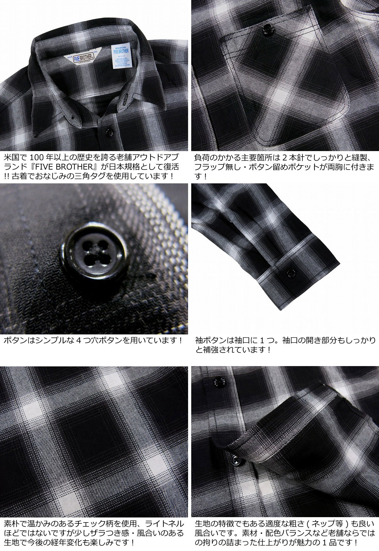 【5/20再入荷! 2024春夏 3色4サイズ】 jh031 新品 FIVE BROTHER オンブレチェック 長袖 ワークシャツ 152464O メンズ ファイブブラザー L/S OMBRE WORK SHIRTS ライトネルシャツ チェックシャツ 【smtb-kd】