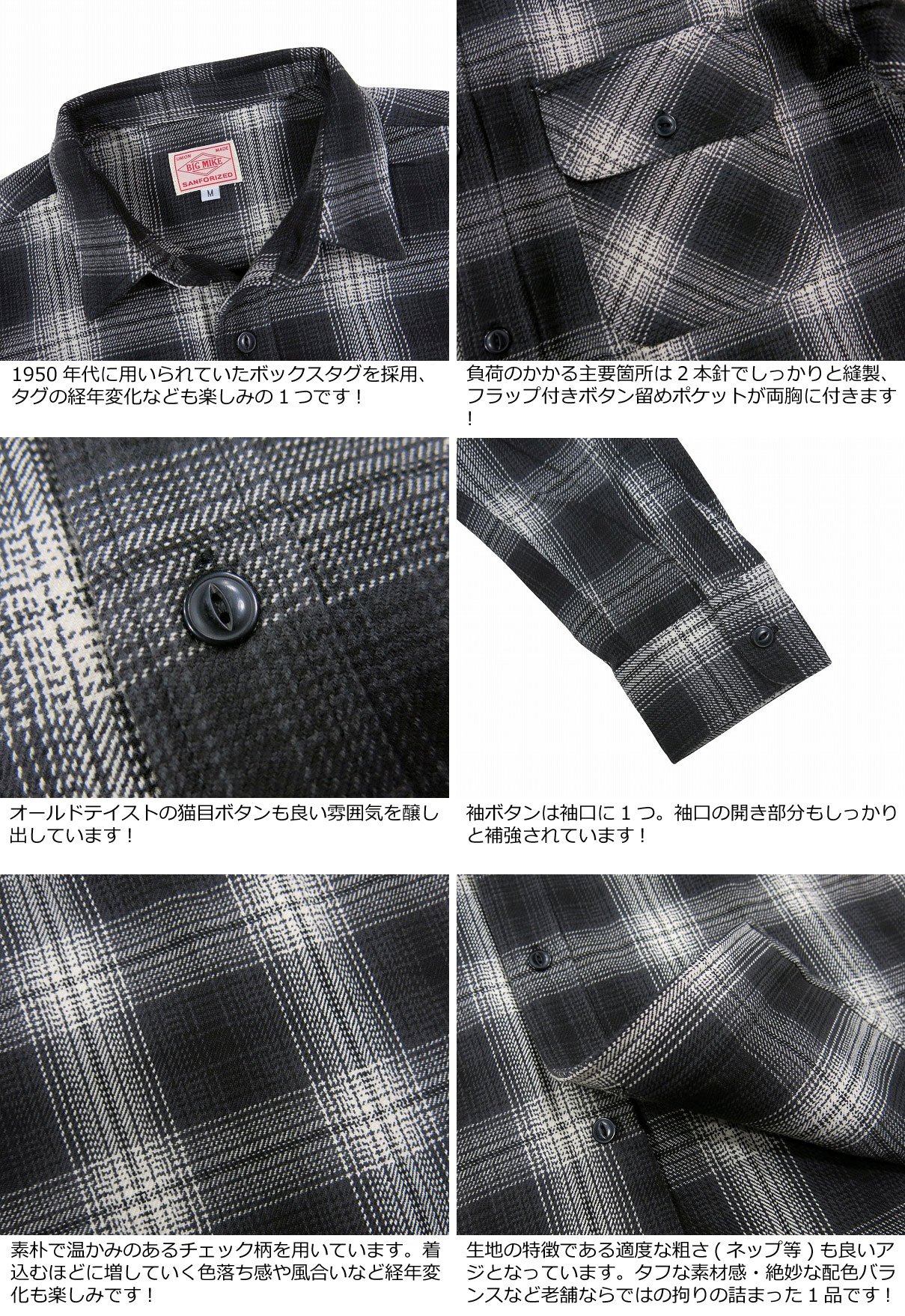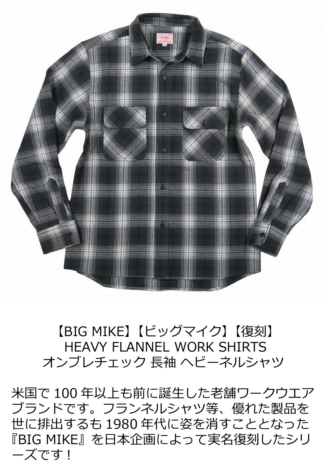 【2024秋冬 4サイズ】 ad445 新品 BIG MIKE 復刻 長袖 オンブレチェック ヘビーネルシャツ 102435200 メンズ ビッグマイク HEAVY FLANNEL WORK SHIRTS フランネルシャツ ワークシャツ チェックシャツ ヘビネル BIGMIKE 【smtb-kd】
