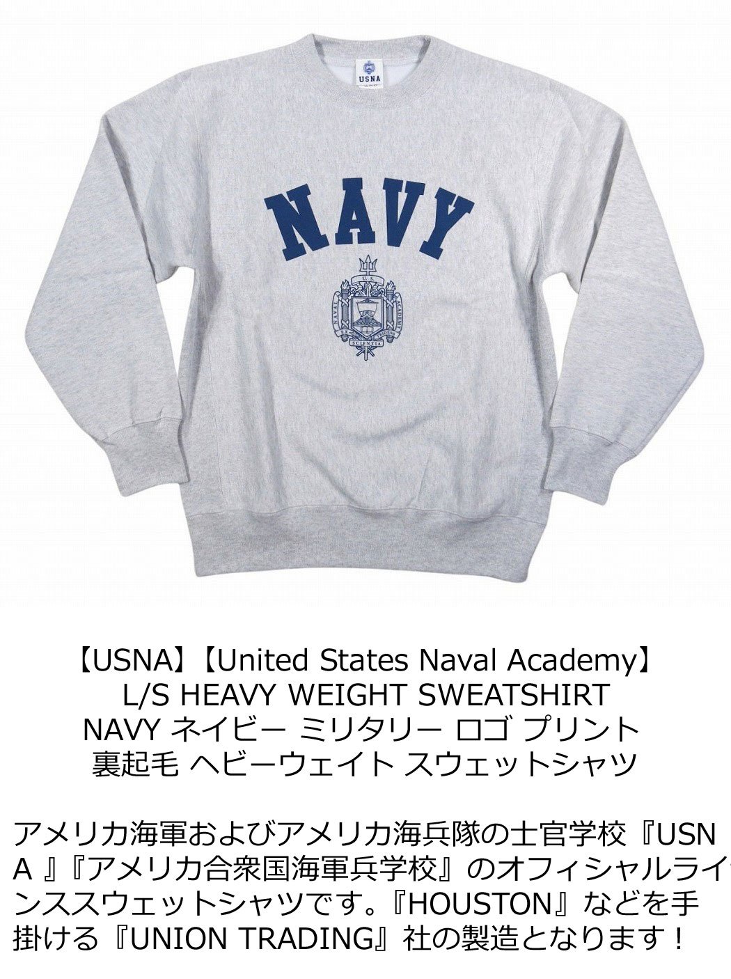 【12/24再入荷! 2024秋冬 2色4サイズ】 jh341 新品 USNA NAVYプリント ヘビーウェイト 長袖 スウェットシャツ NAVY-004 メンズ United States Naval Academy スエット トレーナー 裏起毛 ネイビー プリント ミリタリー 【smtb-kd】