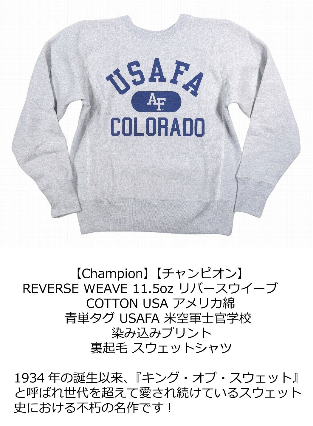 【12/27再入荷! 2024秋冬 2色4サイズ】 jh351 新品 Champion 11.5oz USAコットン リバースウィーブ 青単タグ USAFA カレッジプリント スウェットシャツ C3-A023 メンズ チャンピオン REVERSE WEAVE 米空軍士官学校 裏起毛 トレーナー スエット 青単色タグ 【smtb-kd】